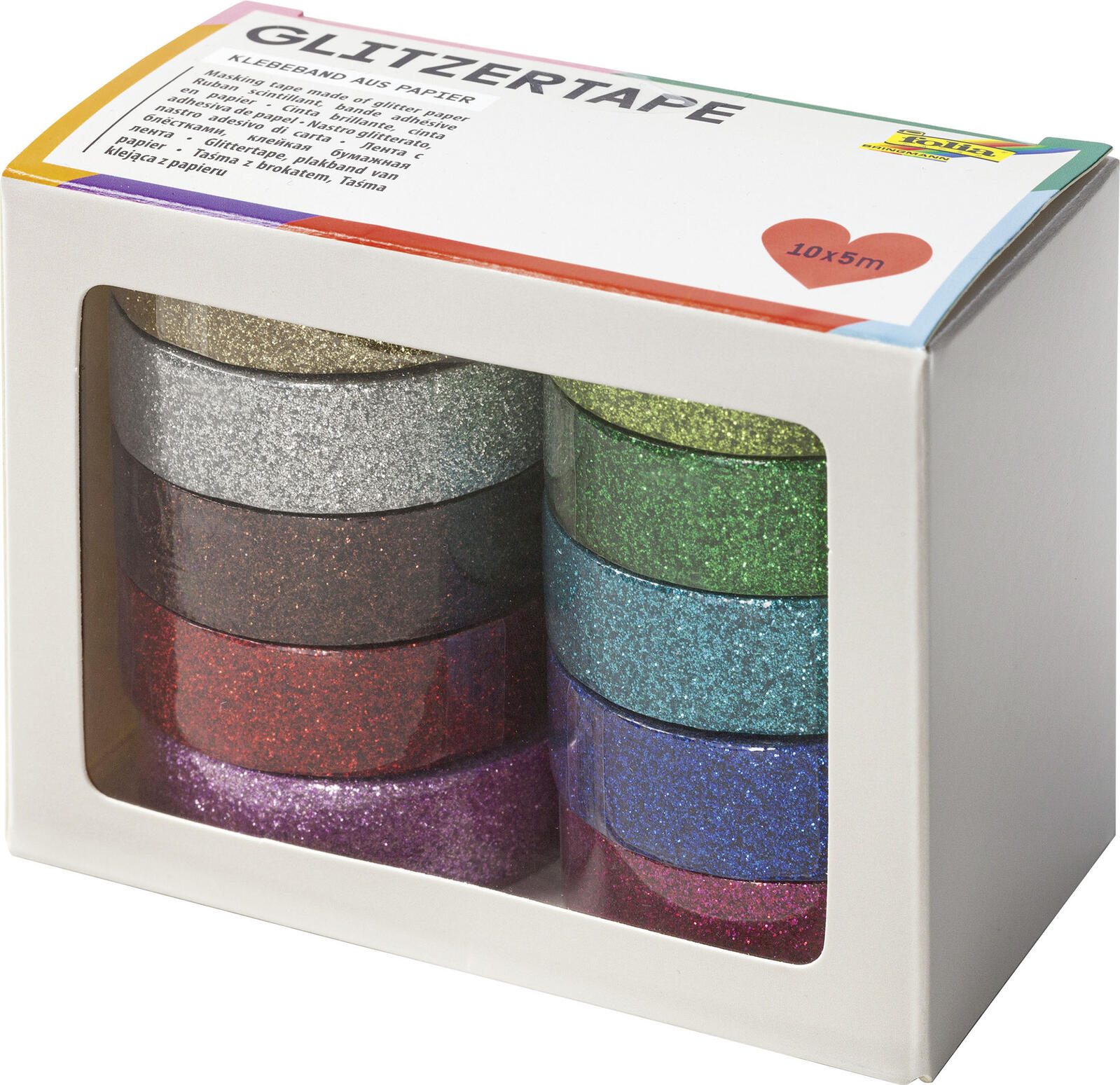 folia Deko-Klebeband 15 mm x 5 m glitter gold, silber, braun, rot, lila, pink, blau, türkis, grün, hellgrün; 1 Pack = 10 Rollen