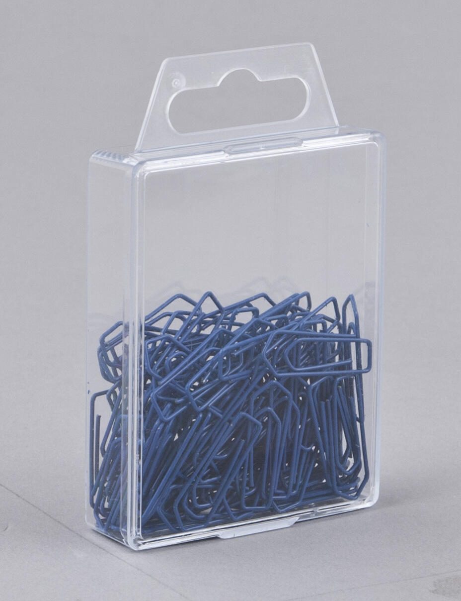 Jede Packung enthält 100 Stück, die in einer praktischen Kunststoffbox verpackt sind. Diese Verpackungsart sorgt dafür, dass die Büroklammern stets ordentlich aufbewahrt werden und leicht zugänglich sind, wenn Sie sie benötigen. Die Lackierung in Blau verleiht den Klammern nicht nur eine attraktive Farbe, sondern schützt sie auch vor Korrosion und Abnutzung, sodass Sie lange Freude an ihnen haben werden.