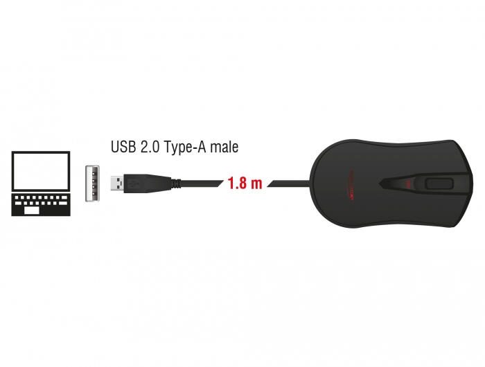 DeLOCK kabelgebundene Gaming Maus, schwarz / rot