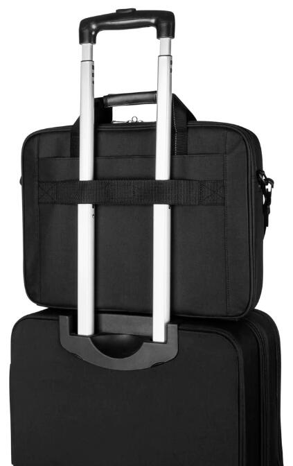Die aus strapazierfähigem Polyester gefertigte Tasche verfügt über konturierte Metallreißverschlüsse sowie komfortable gepolsterte Griffe und einen Schultergurt. Das große Fach auf der Rückseite eignet sich hervorragend zur Aufbewahrung von Akten und Dokumenten, während der mitgelieferte Trolley-Gurt das Stapeln der Tasche auf Rollgepäck erleichtert.