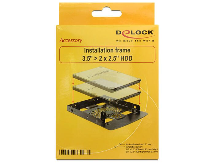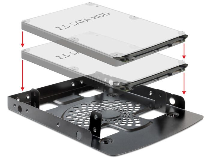 Nutzen Sie diesen Delock Einbaurahmen, um in Ihrem freien 3.5″ Schacht Ihres Computers bis zu zwei 2.5″ Festplatten zu installieren.
