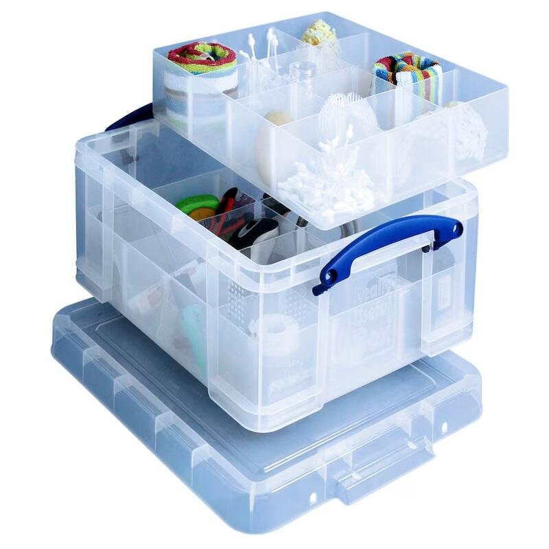Die Really Useful Box ist ideal für die Aufbewahrung von verschiedenen Kleinteilen, sei es im Büro, im Hobbyraum oder im Haushalt. Obwohl sie nicht für Lebensmittel geeignet ist, kannst du sie vielseitig nutzen, um Ordnung zu schaffen und alles griffbereit zu haben. Die Box ist nicht ineinander stapelbar, was bedeutet, dass jede Box ihren eigenen Platz benötigt, aber das transparente Material sorgt dafür, dass du jederzeit den Überblick behältst.