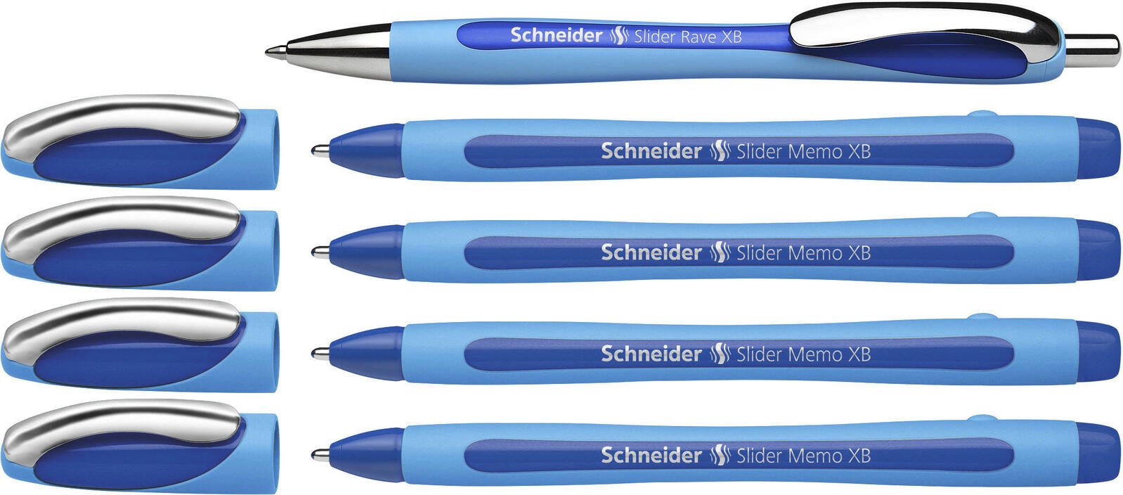 Schneider Kugelschreiber Slider Memo blau, 4 St. + GRATIS Schneider Kugelschreiber Slider Rave XB blau 1 Aktionspack = 4 St.