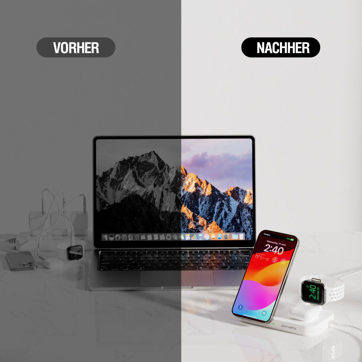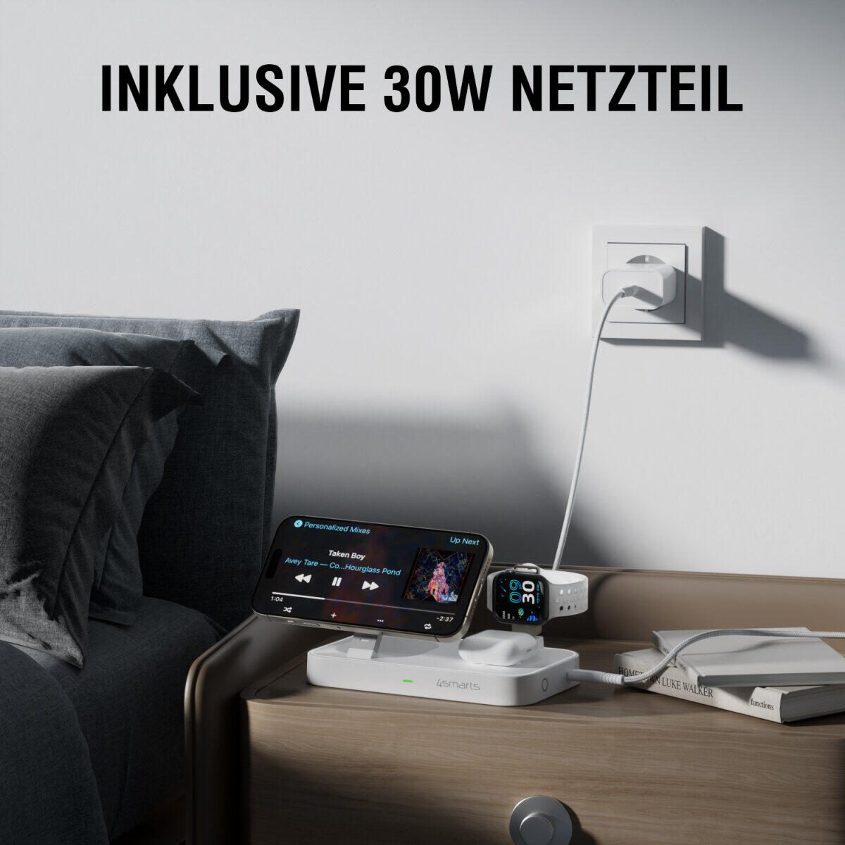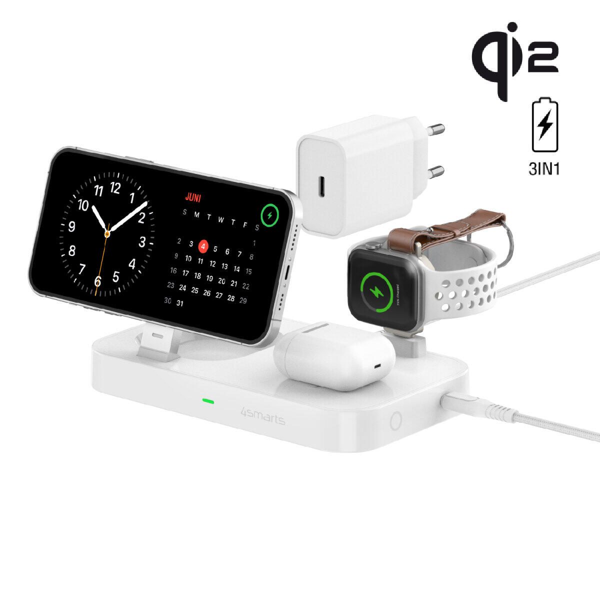 4smarts Qi2 Ladestation Trident mit Charger für Apple Watch, weiß