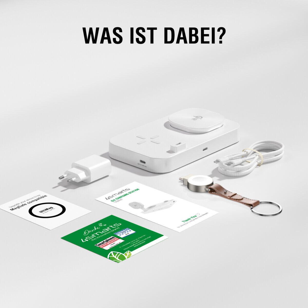 Unser 3-in-1 MagSafe Ladeständer liefert maximale Leistung für drei Geräte gleichzeitig. Im Lieferumfang enthalten ist ein kraftvolles 30W Netzteil samt USB-C-Kabel, um ein schnelles und effizientes Laden zu gewährleisten. Diese Komplettlösung erspart dir den Kauf eines zusätzlichen Adapters. So kannst du deine Geräte direkt nach dem Auspacken aufladen.