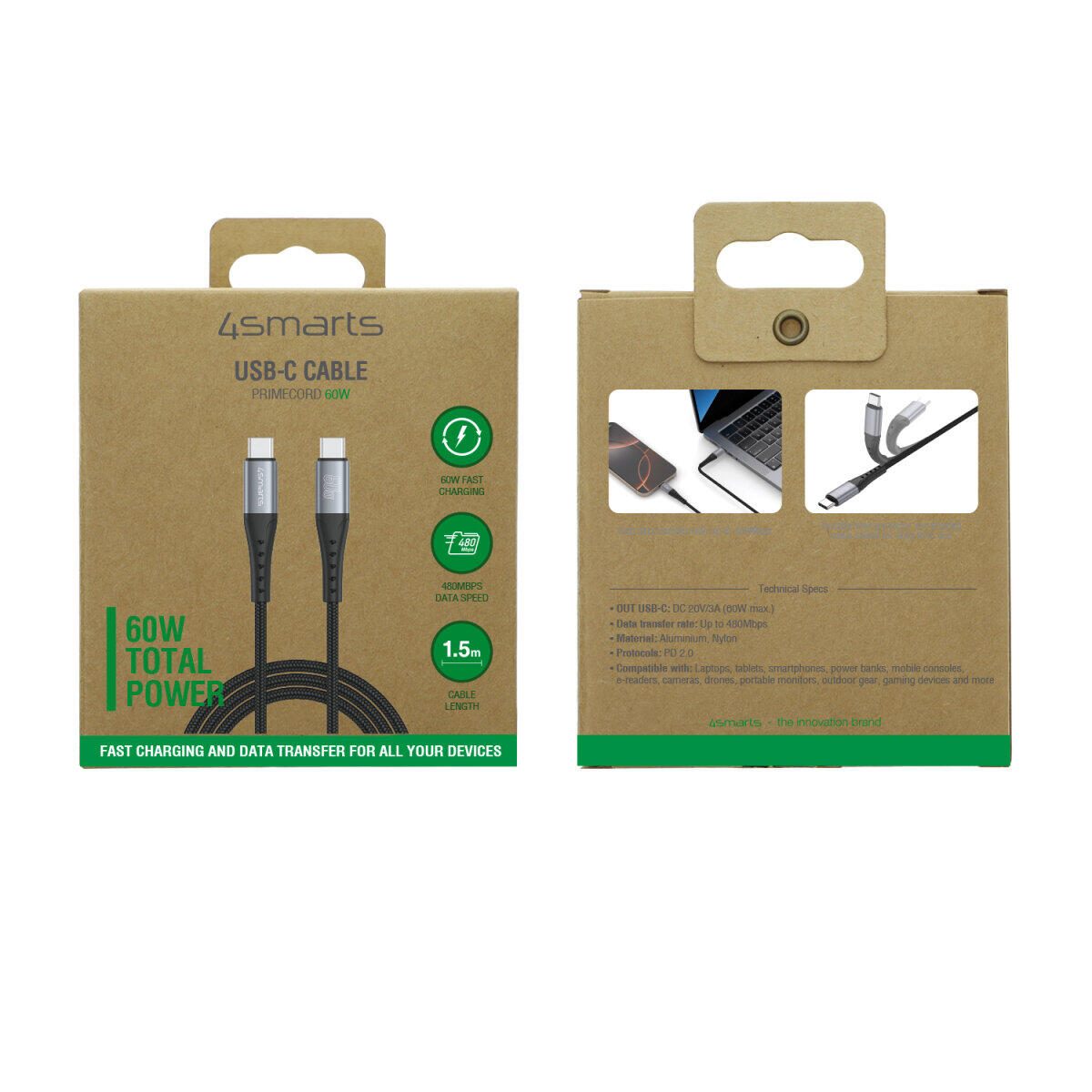 4smarts USB-C Kabel PrimeCord 60W 1,5m, schwarz gun