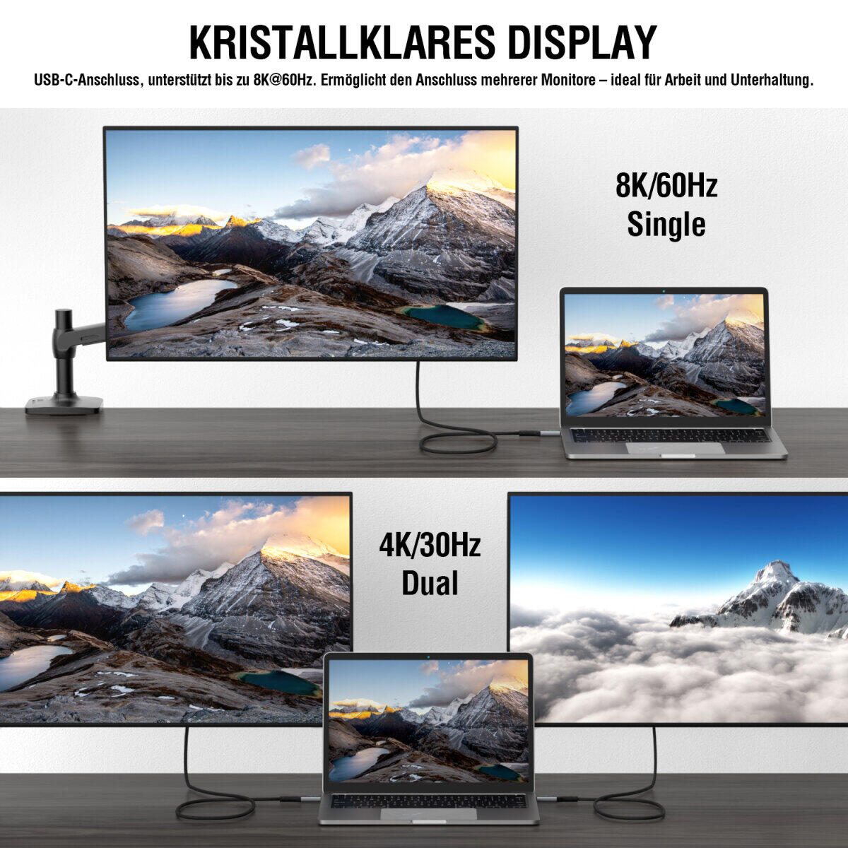 - Multifunktionale Übertragung: Streaming, Gaming oder Arbeiten mit gleichzeitigem Laden, Datenübertragung und 8K-Display-Unterstützung