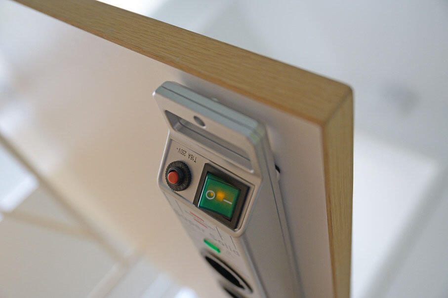 • Kabeleingang gegenüber dem Schalter, dadurch praktische Bedienung z.B. unter dem Schreibtisch. Größere Abstände ermöglichen den Betrieb von Netzgeräten. Gummifüße verhindern wegrutschen.