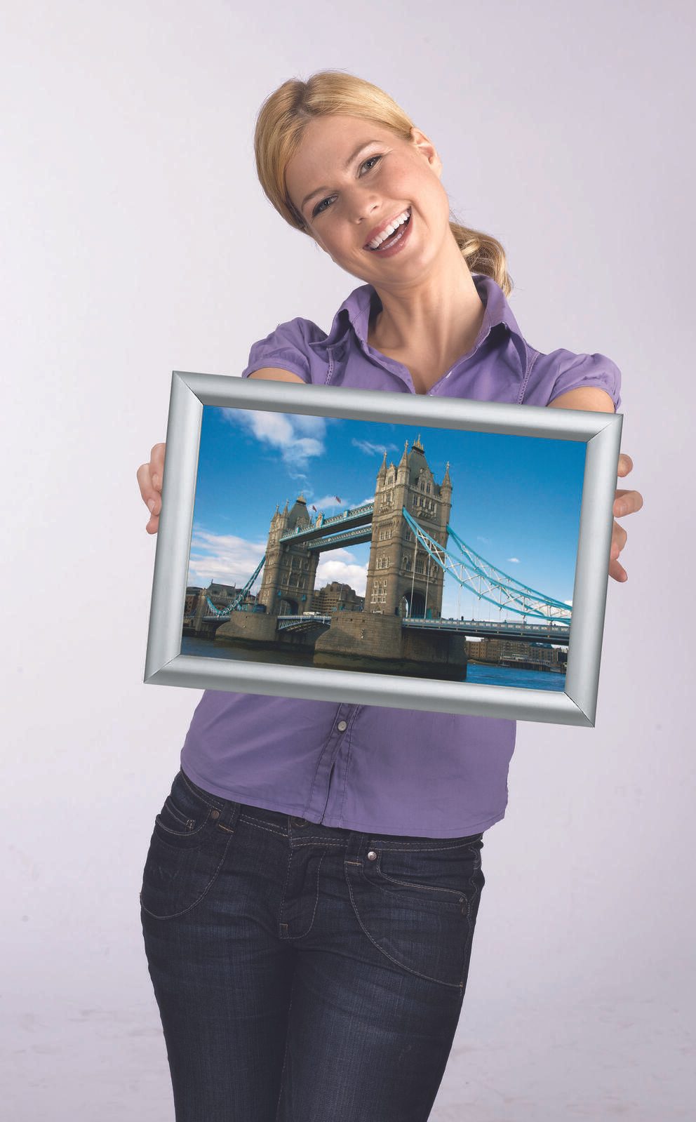Der Rahmen des Klapprahmens besteht aus hochwertigem Aluminium, während die Sichtscheibe aus robustem Kunststoff gefertigt ist. Dadurch ist der Rahmen nicht nur langlebig, sondern verleiht auch deinen Präsentationen einen modernen und professionellen Look. Die silberne Farbe des Rahmens unterstreicht zudem das elegante Design und passt nahtlos in jede Umgebung.