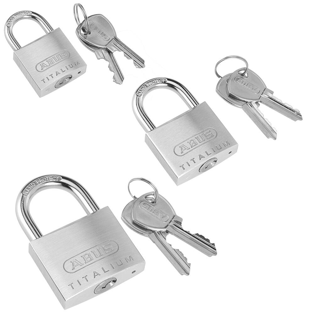 Das ABUS Vorhängeschloss in elegantem Silber vereint Sicherheit und Stil in einem kompakten Design. Dieses Bügelschloss gehört zur Titaliumserie „64ti“ und überzeugt durch seine hochwertigen Materialien und innovative Technik. Mit einem Gewicht von nur 57 Gramm ist es leicht und handlich, ohne dabei Kompromisse in der Sicherheit einzugehen. Der Spezialstahlbügel des ABUS Vorhängeschlosses ist mit der NANO-Protect-Technologie versehen, die einen effektiven Korrosionsschutz bietet. Dies sorgt dafür, dass das Schloss auch unter widrigen Wetterbedingungen zuverlässig funktioniert und eine lange Lebensdauer garantiert ist. Die doppelte Bügelverriegelung erhöht zusätzlich die Sicherheit und schützt deine Wertsachen vor unbefugtem Zugriff. Das Material TITALIUM zeichnet sich durch seine hohe Festigkeit und Leichtigkeit aus, was dieses Vorhängeschloss ideal für den täglichen Gebrauch macht. Ob für die Sicherung von Schuppen, Garagen oder anderen persönlichen Gegenständen, das ABUS Vorhängeschloss in Silber ist die optimale Wahl für sicherheitsbewusste Nutzer, die Wert auf Qualität legen. Die ansprechende silberne Farbe fügt sich harmonisch in jede Umgebung ein und macht das Schloss zu einem funktionalen Accessoire, das sowohl im Innen- als auch im Außenbereich eingesetzt werden kann. Vertraue auf die bewährte Qualität von ABUS und schütze deine Wertsachen mit einem Schloss, das für seine Langlebigkeit und Zuverlässigkeit bekannt ist.Technische Daten
