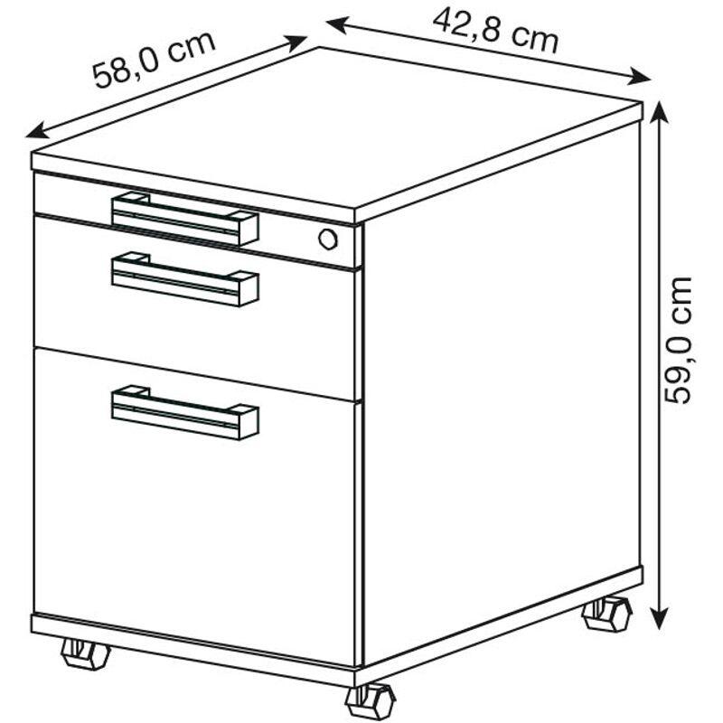 Der HAMMERBACHER Rollcontainer VAC20/3/3/NU in elegantem Ahorn bietet eine perfekte Kombination aus Funktionalität und ansprechendem Design. Mit seinen kompakten Abmessungen von 42,8 x 58,0 x 59,0 cm passt er ideal in jedes Büro oder Homeoffice und sorgt für Ordnung und Übersichtlichkeit. Dieser Rollcontainer ist mit einem innovativen Selbsteinzug und einem Soft-Stopp ausgestattet, was ein leises und sanftes Schließen der Schubladen ermöglicht. Die Verwendung von hochwertiger Spanplatte sorgt nicht nur für Stabilität, sondern auch für eine ansprechende Optik, die sich harmonisch in verschiedene Einrichtungsstile einfügt. Die Schubladen in der gleichen Farbgebung wie der Korpus bieten ausreichend Stauraum für Unterlagen, Büromaterialien und persönliche Gegenstände. Mit einem Relinggriff aus robustem Stahl lässt sich der Rollcontainer bequem und einfach bewegen, wodurch er sich flexibel an deine Bedürfnisse anpassen kann. Die Serie AC20 NU von HAMMERBACHER steht für Qualität und durchdachte Funktionalität, die den Arbeitsalltag erleichtert. Der Rollcontainer ist nicht nur praktisch, sondern verleiht deinem Arbeitsplatz auch eine moderne Note. Ob im Büro oder im Homeoffice, der HAMMERBACHER Rollcontainer VAC20/3/3/NU ist die ideale Lösung für alle, die Wert auf Ordnung und Stil legen.Technische Daten