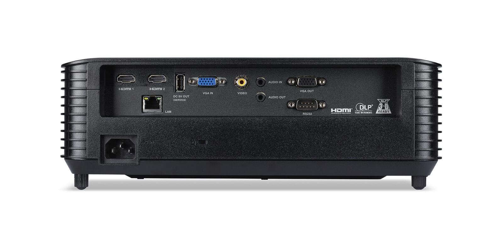 Der Acer X1228Hn verfügt über eine Vielzahl von Anschlüssen, darunter 2x HDMI, VGA, Composite, Audio In/Out, USB-A, D-Sub Out, RJ45 und RS232, die eine einfache und vielseitige Konnektivität ermöglichen. Mit einem flexiblen Projektionsdistanz-Verhältnis von 2,16:1 kannst du das Bild in Größen von 0,58 bis 7,62 Metern (22-300 Zoll) projizieren – ideal für verschiedene Raumgrößen.