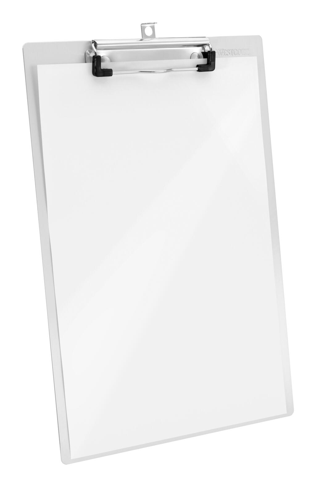 Das WESTCOTT Klemmbrett in elegantem Silber ist die perfekte Lösung für alle, die ihre Unterlagen stilvoll und praktisch organisieren möchten. Mit den Maßen von 23,0 x 32,0 cm ist es ideal für DIN A4 Formate geeignet und bietet ausreichend Platz für bis zu 30 Blatt. Hergestellt aus hochwertigem Aluminium, vereint dieses Klemmbrett Langlebigkeit und modernes Design. Das silberne Finish verleiht ihm eine ansprechende Optik, die sowohl im Büro als auch in der Schule oder bei Präsentationen Eindruck hinterlässt. Der Metallclip, der an der kurzen Seite angebracht ist, sorgt dafür, dass deine Dokumente sicher gehalten werden, ohne sie zu beschädigen. So kannst du dich ganz auf deine Arbeit konzentrieren, ohne dir Gedanken über lose Blätter machen zu müssen. Die Verwendung des WESTCOTT Klemmbrettes ist denkbar einfach. Egal, ob du wichtige Notizen, Präsentationen oder Zeichnungen festhalten möchtest, dieses Klemmbrett bietet dir die Flexibilität, die du benötigst. Es ist leicht und dennoch robust, was es zu einem idealen Begleiter für unterwegs macht. Zusammengefasst ist das WESTCOTT Klemmbrett DIN A4 silber nicht nur ein praktisches Hilfsmittel, sondern auch ein stilvolles Accessoire, das in keinem Büro oder Schreibtisch fehlen sollte. Mit seiner Kombination aus Funktionalität und ansprechendem Design setzt es neue Maßstäbe für Klemmbretter und wird schnell zu deinem unverzichtbaren Partner im Alltag.Technische Daten