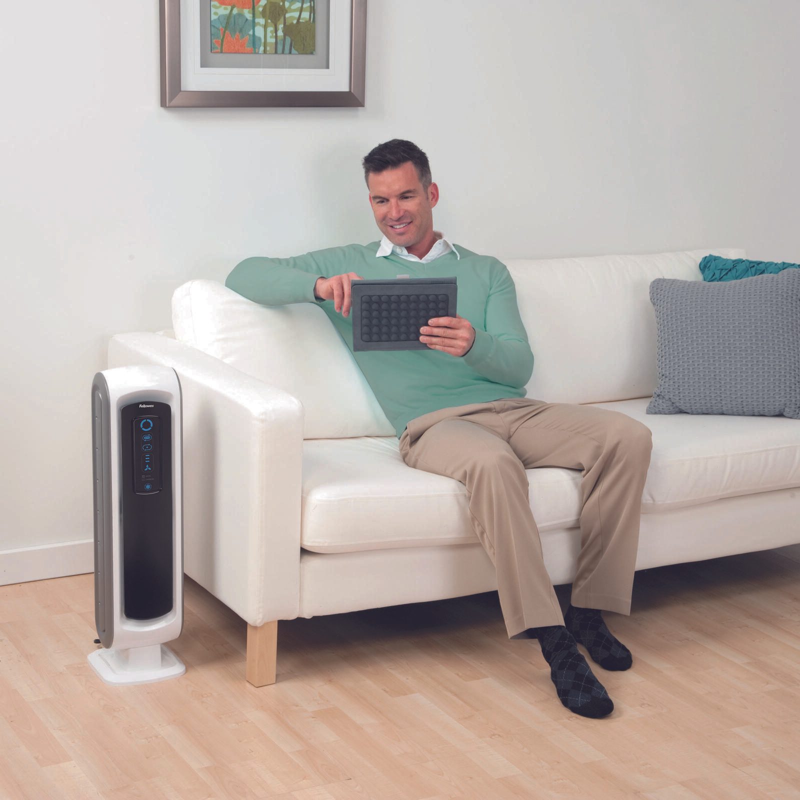 Indem der Fellowes Luftreiniger Aeramax Dx5 weiß die Luft reinigt, schafft er eine gesündere Umgebung in deinem Zuhause. Die dezente weiße Farbe fügt sich unauffällig in jedes Raumkonzept ein und trägt zur Verbesserung des Raumklimas bei.