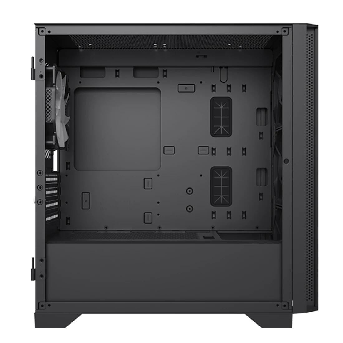 Das einzigartige Design des seitlich schwenkbaren Seitenteils aus gehärtetem Glas lässt sich für Benutzer nicht nur leichter demontieren, sein Design ohne Bohrlöcher verbessert auch die Stabilität und Sicherheit des Teils erheblich. |