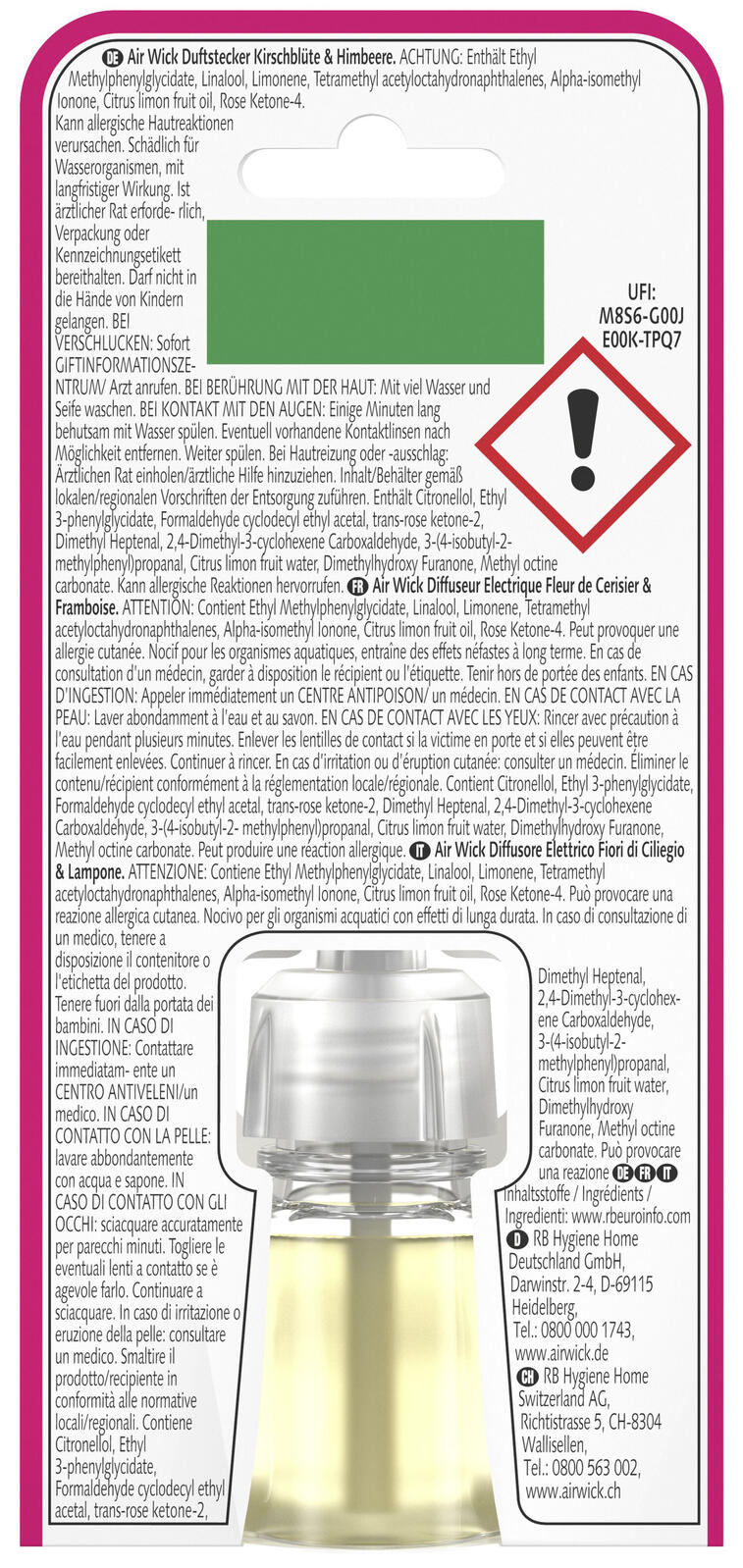 Raumduft-Nachfüller vorsichtig verwenden. Vor Gebrauch stets Etikett und Produktinformationen lesen.
