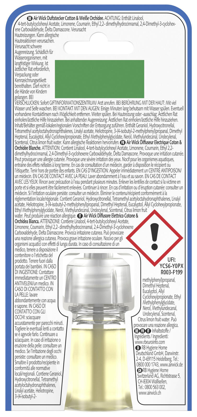 Raumduft-Nachfüller vorsichtig verwenden. Vor Gebrauch stets Etikett und Produktinformationen lesen.
