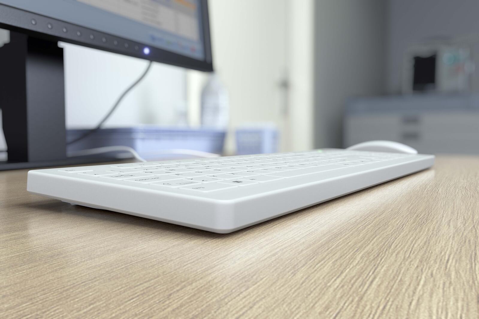 - Eigenschaften: kabelgebunden, Nummernblock, spritzwassergeschützt, Stellfüße, wischdesinfizierbar