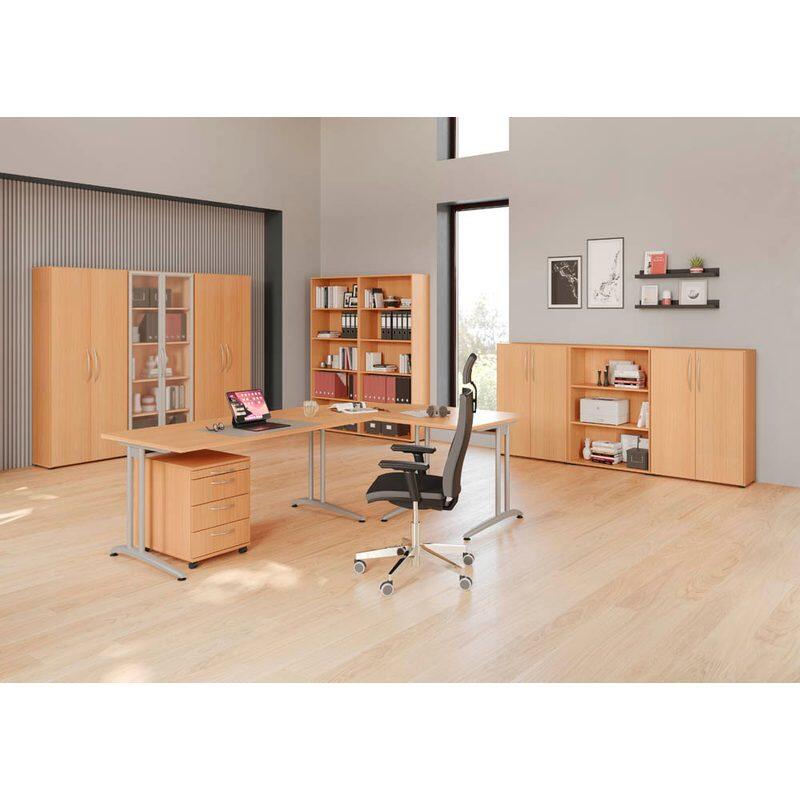 Das HAMMERBACHER Aktenregal 4000 in ansprechendem Buche-Dekor vereint Funktionalität und modernes Design. Mit seinen kompakten Maßen von 80,0 x 33,0 x 188,0 cm passt es ideal in jedes Büro oder Home-Office und bietet eine optimale Lösung zur Aufbewahrung von Akten und Unterlagen. Hergestellt aus hochwertiger Spanplatte, ist dieses Regal nicht nur robust, sondern auch pflegeleicht. Die fünf geräumigen Fächer ermöglichen eine übersichtliche Organisation deiner Dokumente. Ob du wichtige Akten, Bücher oder andere Büroartikel verstauen möchtest, das Regal bietet ausreichend Platz und sorgt für Ordnung in deinem Arbeitsbereich. Der warme Farbton in Buche verleiht deinem Büro eine einladende Atmosphäre und lässt sich harmonisch mit verschiedenen Einrichtungsstilen kombinieren. Dank der klaren Linien und der schlichten Eleganz des Basic 4000 Designs, wird das Aktenregal zum stilvollen Blickfang in deinem Raum. Mit dem HAMMERBACHER Aktenregal 4000 buche entscheidest du dich für ein praktisches Möbelstück, das nicht nur deine Arbeitsabläufe unterstützt, sondern auch zur ästhetischen Gestaltung deines Büros beiträgt. Die durchdachte Konstruktion und die hochwertige Verarbeitung garantieren Langlebigkeit und Zufriedenheit über viele Jahre.Technische Daten