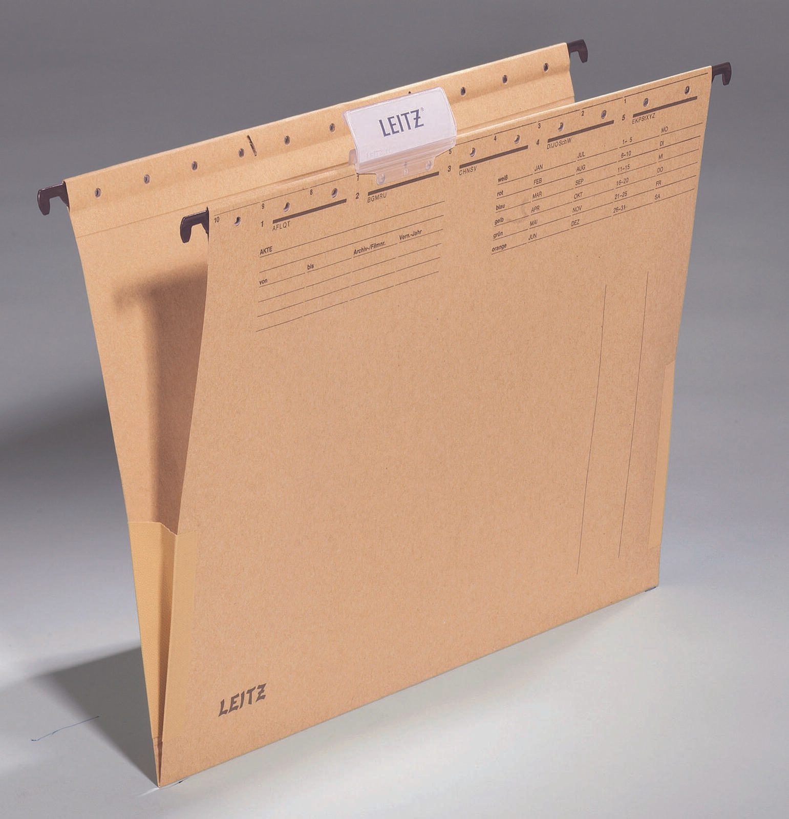 Die LEITZ Hängetaschen Alpha 1916 in naturbraun sind die ideale Lösung für die organisierte Ablage von Dokumenten im DIN A4 Format. Hergestellt aus hochwertigem Recycling-Natron-Karton mit einem Papiergewicht von 250 g/m², bieten diese Hängetaschen nicht nur eine umweltfreundliche Option, sondern auch eine robuste und langlebige Aufbewahrung für deine Unterlagen. Die natürliche braune Farbe verleiht den Taschen ein ansprechendes und zeitloses Design, das sich harmonisch in jedes Büro oder Home Office einfügt. Mit der Lieferung erhältst du 25 Stück, die sich perfekt für die lose Ablage von Dokumenten eignen. Die Hängetaschen sind mit verschieb- und einrastbaren Vollsichtreitern ausgestattet, die dir eine individuelle Beschriftung ermöglichen. So behältst du stets den Überblick über deine Unterlagen und kannst sie schnell und unkompliziert finden. Die LEITZ Hängetaschen Alpha 1916 sind nicht nur funktional, sondern auch eine umweltbewusste Wahl, die die Wiederverwertung von Materialien unterstützt. Sie bieten eine effiziente Möglichkeit, deine Dokumente zu organisieren und tragen gleichzeitig zur Reduzierung von Papierabfällen bei. Ob im Büro, in der Schule oder zu Hause, diese Hängetaschen sind vielseitig einsetzbar und helfen dir, Ordnung zu halten. Mit ihrem durchdachten Design und der hochwertigen Verarbeitung sind die LEITZ Hängetaschen Alpha 1916 ein unverzichtbares Hilfsmittel für jeden, der Wert auf eine strukturierte Ablage legt.Technische Daten