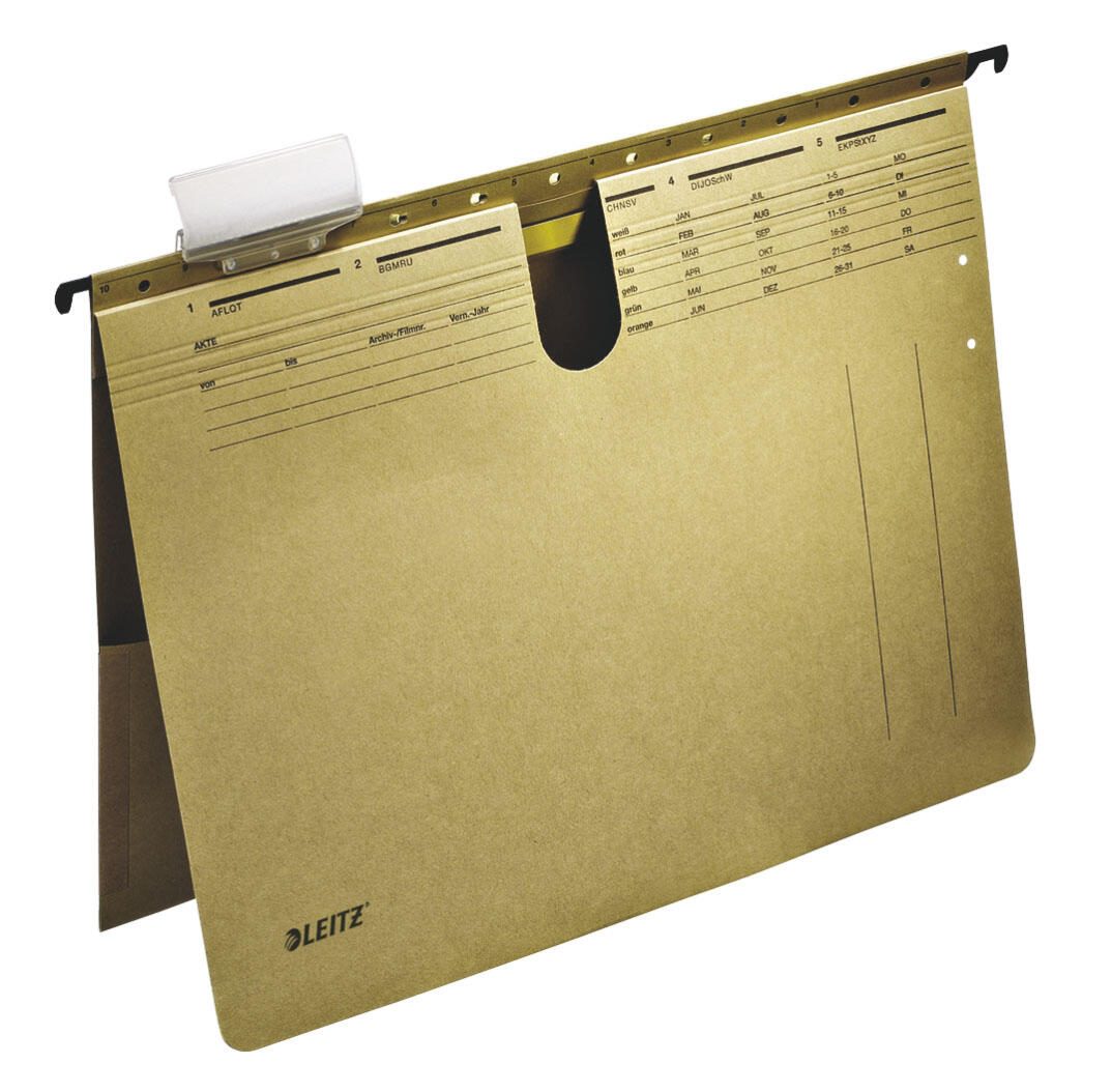 Der LEITZ Alpha Hängehefter in naturbraun ist die ideale Lösung für alle, die ihre Dokumente effizient und stilvoll organisieren möchten. Mit seiner hochwertigen kaufmännischen Heftung bietet dieser Hängehefter nicht nur eine praktische Möglichkeit, Unterlagen sicher abzulegen, sondern sorgt auch dafür, dass alles an seinem Platz bleibt. Der Hefter ist speziell für das Format DIN A4 konzipiert und eignet sich perfekt für den Einsatz im Büro, in der Schule oder zu Hause. Hergestellt aus robustem Natron-Karton, vereint der LEITZ Alpha Hängehefter Stabilität und Umweltfreundlichkeit. Der natürliche Farbton in braun verleiht dem Hefter ein ansprechendes, zeitloses Design, das sich harmonisch in jede Umgebung einfügt. Mit einer Innentasche ausgestattet, bietet dieser Hefter zusätzlichen Stauraum für lose Blätter oder wichtige Dokumente, die du schnell griffbereit haben möchtest. Die Anzahl der Abheftvorrichtungen beträgt 1, was eine einfache und schnelle Organisation deiner Unterlagen ermöglicht. Mit einer Packung von 25 Stück kannst du sicherstellen, dass du immer genügend Hängehefter zur Hand hast, um deine Dokumente optimal zu sortieren und zu schützen. Der LEITZ Alpha Hängehefter ist nicht nur funktional, sondern auch ein stilvolles Büroaccessoire, das deine Arbeitsumgebung aufwertet. Egal, ob du wichtige Verträge, Präsentationen oder persönliche Unterlagen abheften möchtest, der LEITZ Alpha Hängehefter bietet dir die perfekte Lösung. Vertraue auf die Qualität von LEITZ und genieße die Vorteile eines durchdachten und ansprechenden Hängehefters, der dir hilft, Ordnung zu halten und gleichzeitig einen professionellen Eindruck zu hinterlassen.Technische Daten
