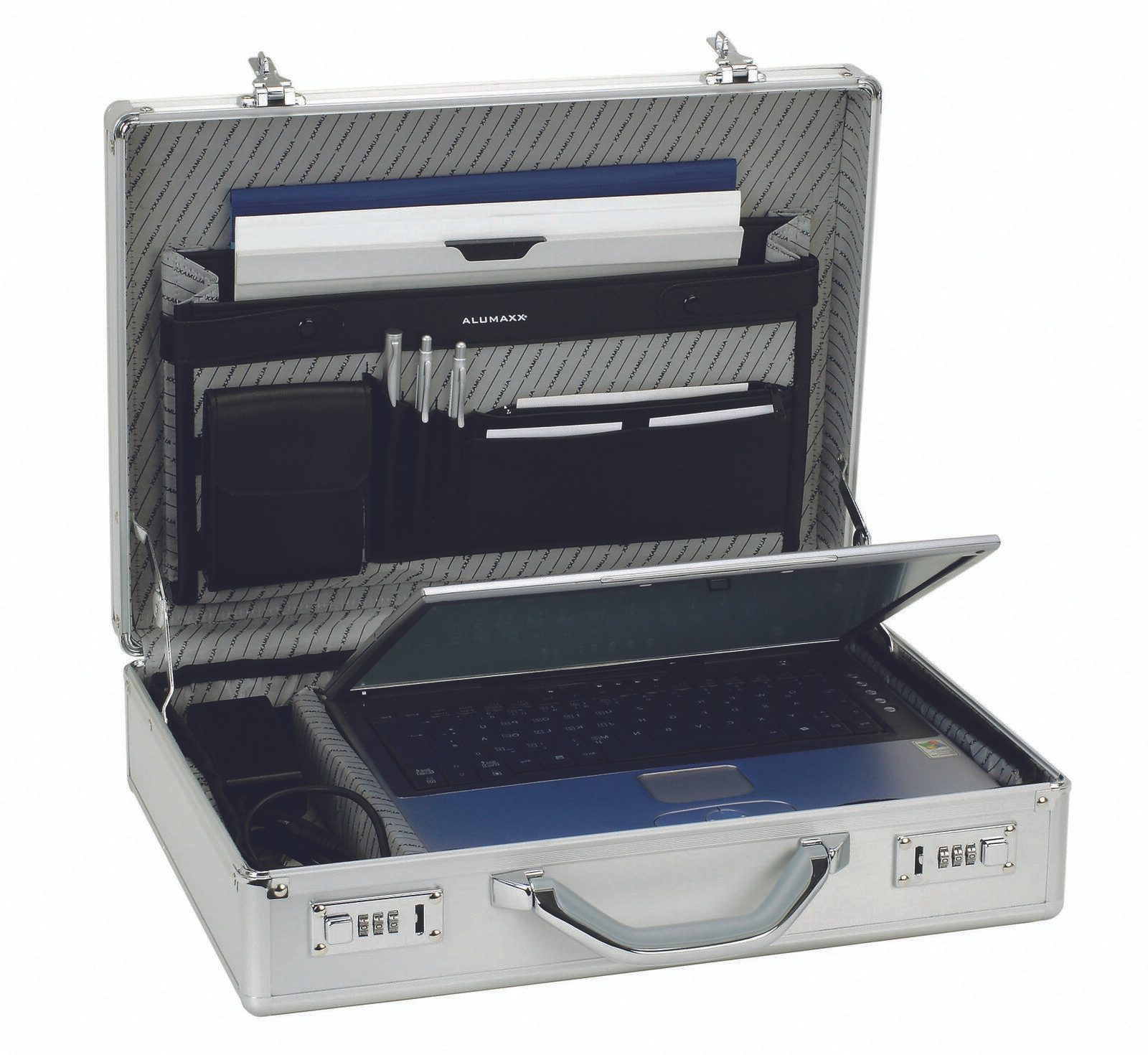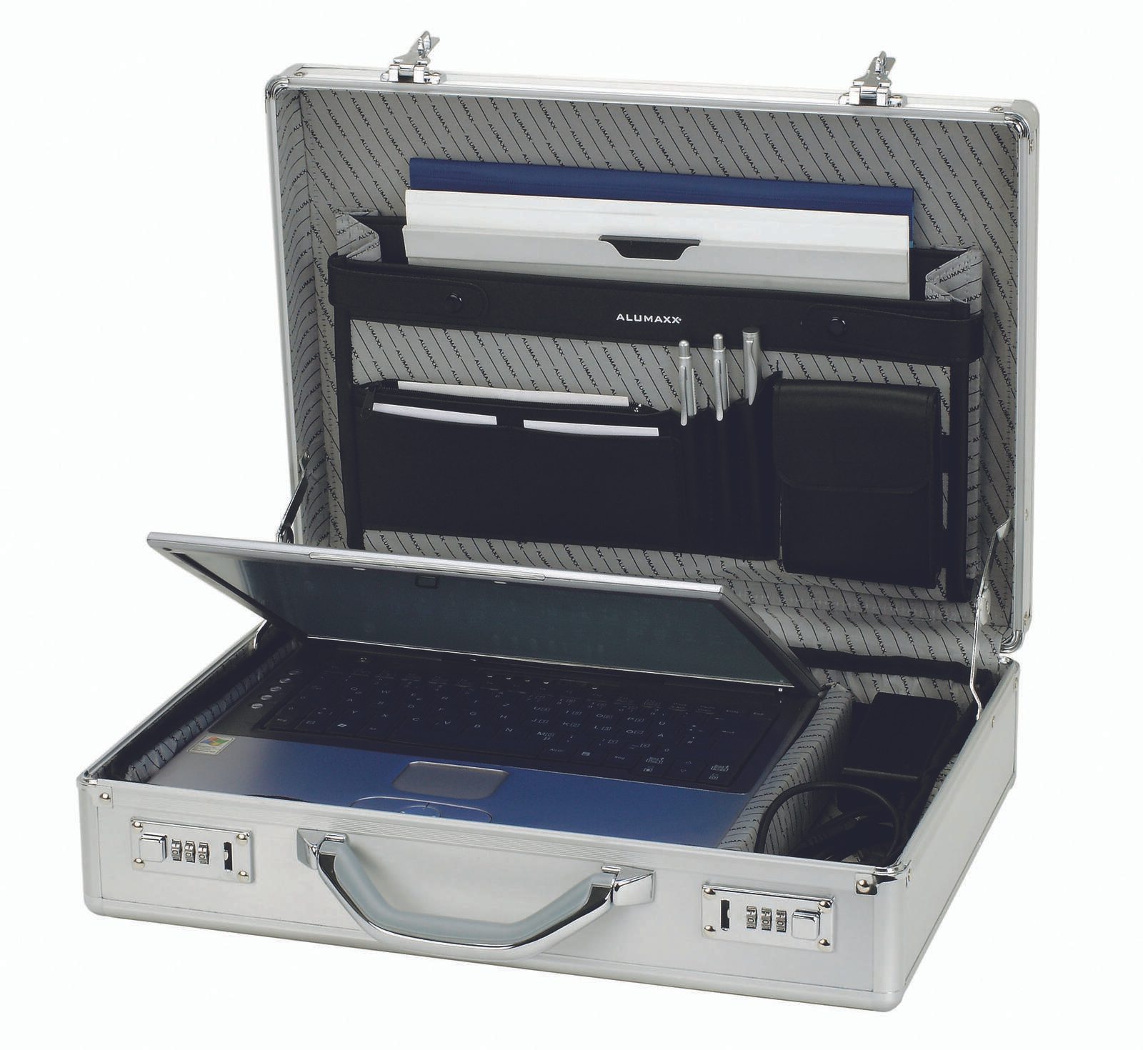 Mit seinem zeitlosen Design und der durchdachten Ausstattung ist der ALUMAXX Aktenkoffer KRONOS der perfekte Begleiter für alle, die auch unterwegs gut organisiert sein möchten. Er vereint Eleganz mit praktischen Vorteilen und ist somit die ideale Wahl für jeden, der Wert auf Qualität und Funktionalität legt.