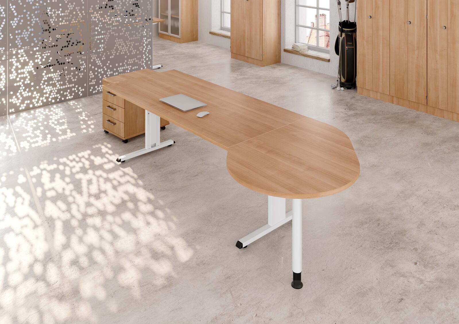 Der HAMMERBACHER Anbautisch höhenverstellbar VLA81/N/W in edlem Nussbaum ist die perfekte Ergänzung für jeden Arbeitsplatz. Dieser Anbautisch ist speziell für die Schreibtischserien OS, FS, US, ZS, AS und YS von HAMMERBACHER konzipiert und bietet eine flexible Lösung, um deinen Arbeitsbereich zu erweitern und zu optimieren. Mit einer großzügigen Fläche von 103 cm x 80 cm bietet der Tisch ausreichend Platz für deine Unterlagen, Geräte oder sogar für einen zusätzlichen Monitor. Die Tischplatte besteht aus robuster Spanplatte, die nicht nur langlebig ist, sondern auch eine ansprechende Optik in Nussbaumfarbe bietet. Diese Farbgebung fügt sich harmonisch in moderne Büroumgebungen ein und schafft eine angenehme Arbeitsatmosphäre. Das Gestell des Anbautisches ist in einem klassischen Weiß gehalten, was dem Tisch eine frische und zeitgemäße Note verleiht. Hergestellt aus stabilem Stahl, garantiert das Gestell eine hohe Stabilität und Langlebigkeit, sodass du dich auf eine zuverlässige Nutzung verlassen kannst. Die Höhenverstellbarkeit ermöglicht es dir, den Tisch optimal an deine individuellen Bedürfnisse anzupassen, was besonders wichtig für eine ergonomische Arbeitsweise ist. Der HAMMERBACHER Anbautisch VLA81/N/W ist nicht nur funktional, sondern auch ästhetisch ansprechend. Die Tropfenform des Tisches sorgt für einen modernen Look, der in jedes Büro passt. Mit diesem Anbautisch schaffst du dir einen vielseitigen und stilvollen Arbeitsplatz, der sowohl für konzentriertes Arbeiten als auch für kreative Tätigkeiten geeignet ist.Technische Daten