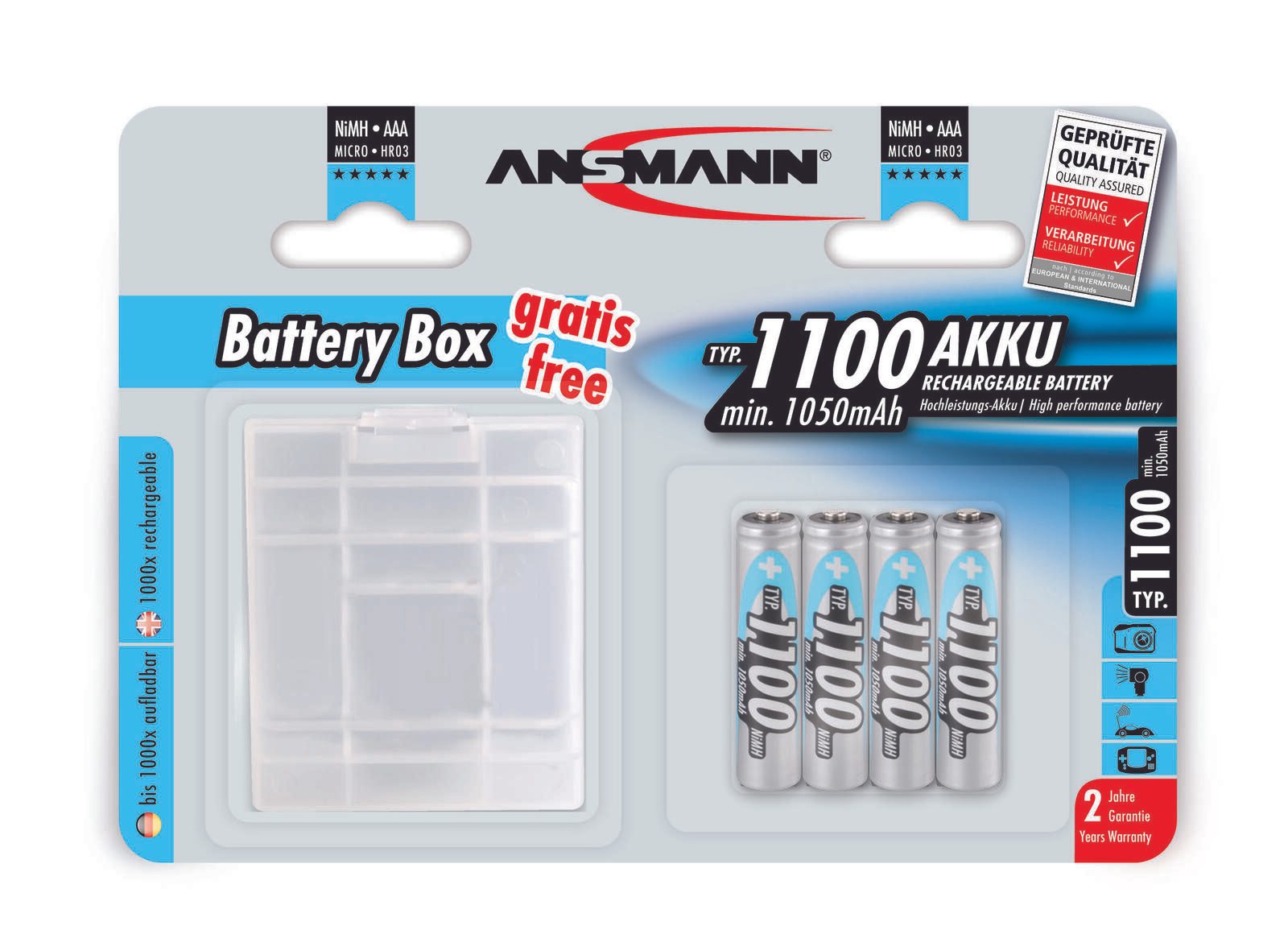 - Batterietyp: Micro AAA, LR 3, LR 03, MN2400, HR3, HR03, FR3
