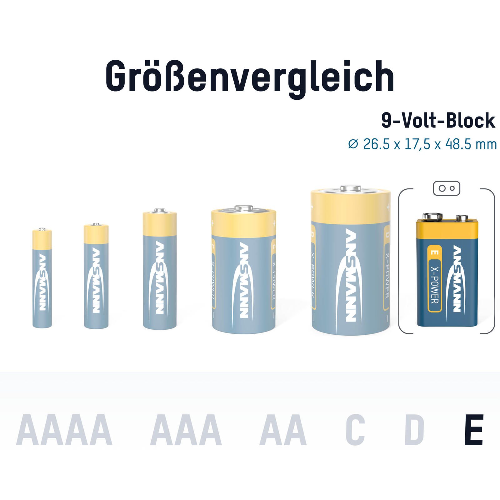 - Batterietyp: E-Block, LR 22, 6LR21, 6LR61, MN1604, CR-V9, 6F22, 6LF22