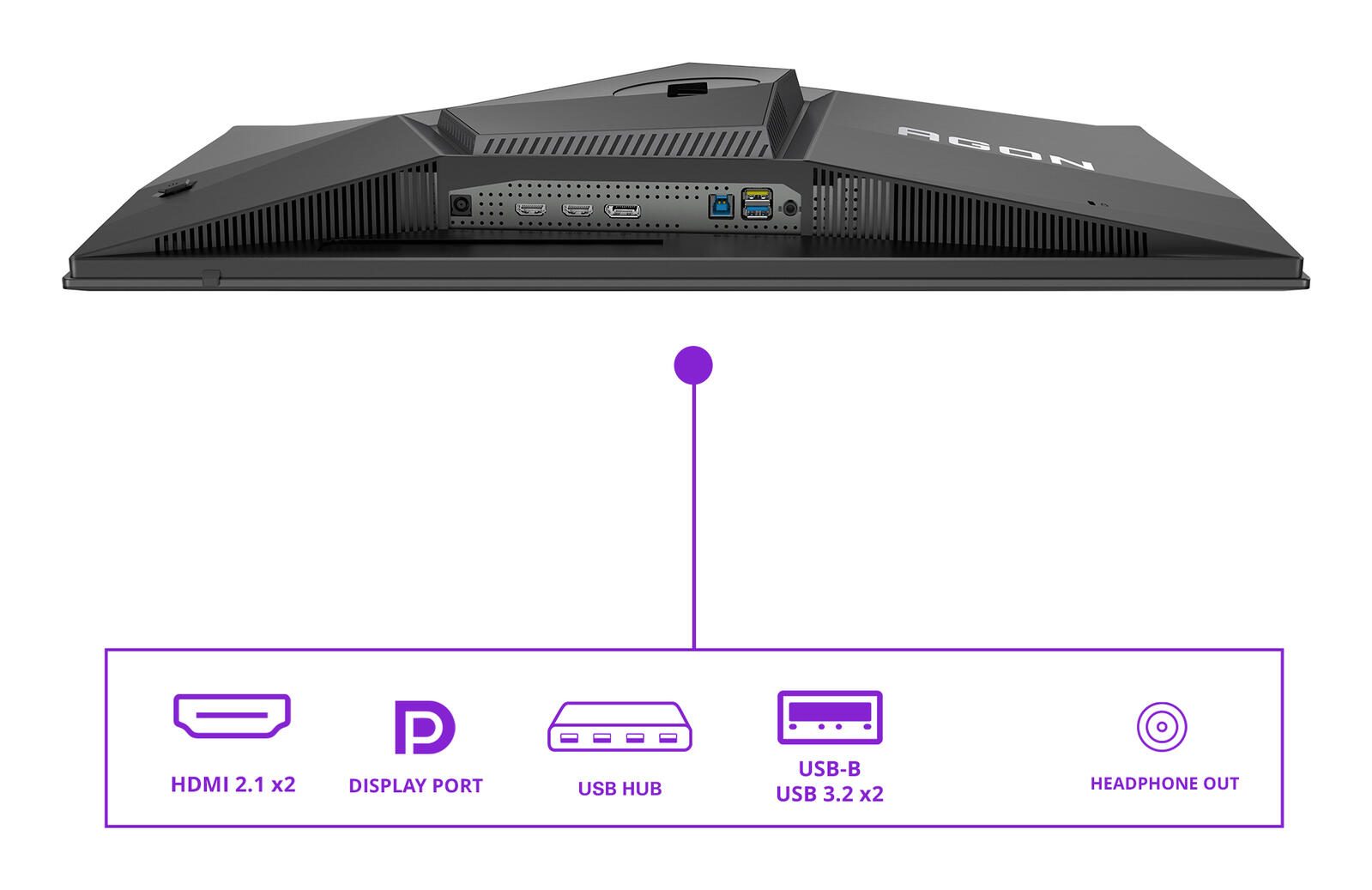 - Anschlüsse: 2x HDMI 2.1, DisplayPort 2.1, USB-B 3.2, 3x USB-A 3.2