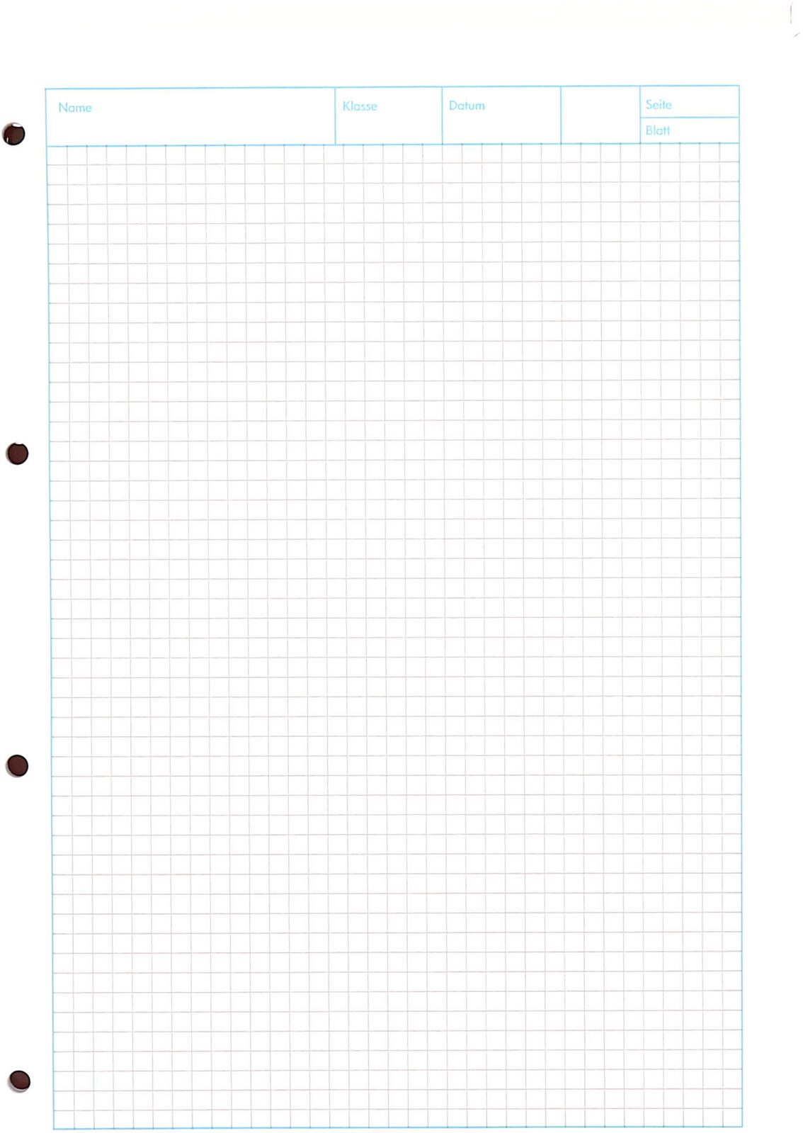 • Der karierte Block in A4, speziell für Arbeiten in der Klasse, die vom Lehrer korrigiert werden, mit Feldern für Name, Klasse sowie Datum auf jeder Seite, hochveredeltes Papier sorgt für die bei Arbeiten wichtige Schreibqualität.