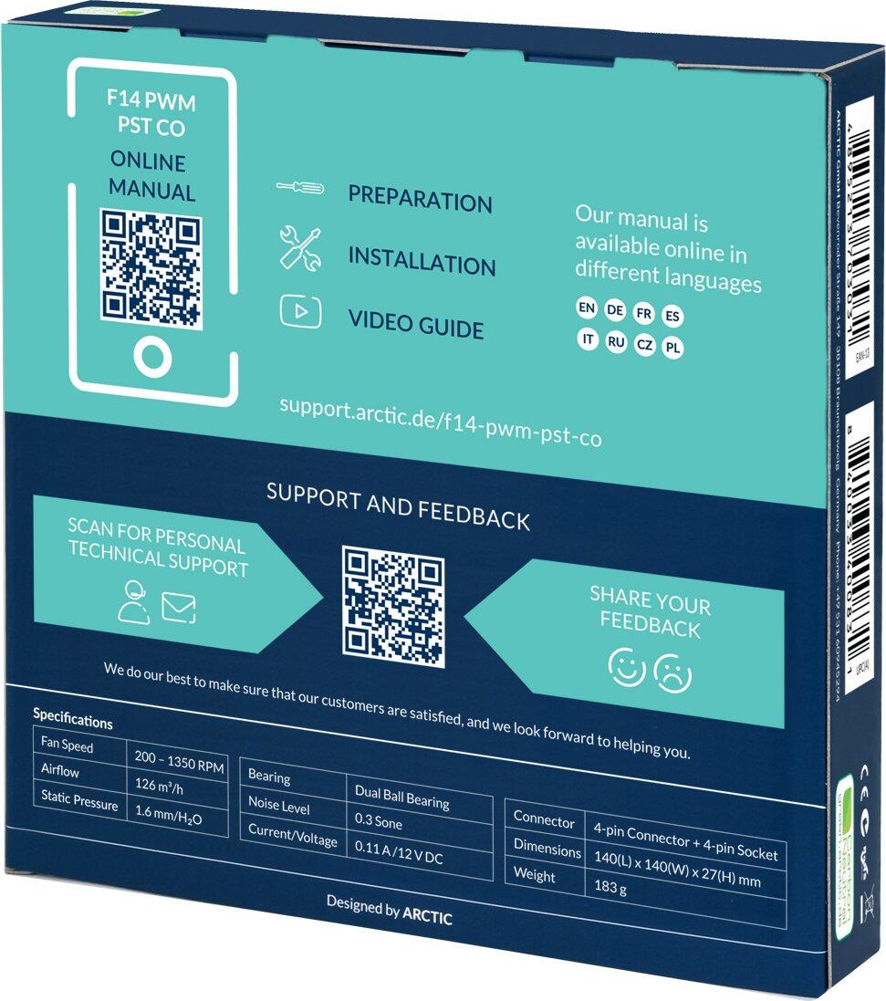 LÜFTERSTEUERUNG MADE IN GERMANYDer ARCTIC F14 PWM PST CO Lüfter ist bekannt für einen guten Luftstrom bei einem angenehmen Geräuschniveau. Eine tolle Verbesserung ist bei Motor und Regler zu erkennen. Unsere deutschen Ingenieure haben den Lüfter so weiterentwickelt, dass er mit geringerer Geschwindigkeit arbeitet, wenn die Leistung nicht benötigt wird. Viele Mainboards bieten keine PWM-Signale unter 40 % und machen so den Kühler unnötig laut - nicht so der F14 PWM PST CO. |