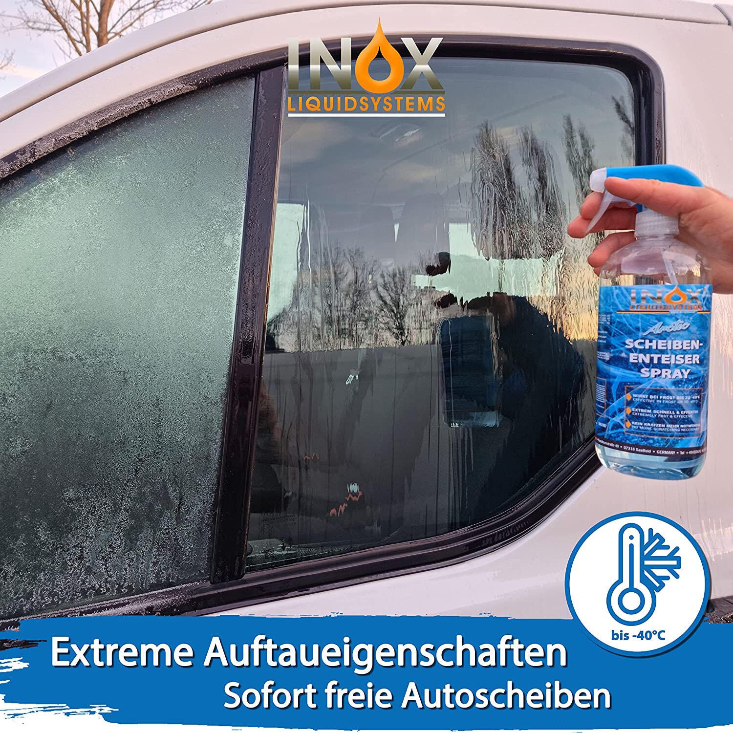 Der INOX Scheibenenteiser Arctic ist die ideale Lösung, um deine Autoscheiben im Winter schnell und einfach von Eis zu befreien. Diese spezielle Sprühflasche enthält 1,0 l effektiven Enteiser, der selbst bei extremen Temperaturen zuverlässig arbeitet.