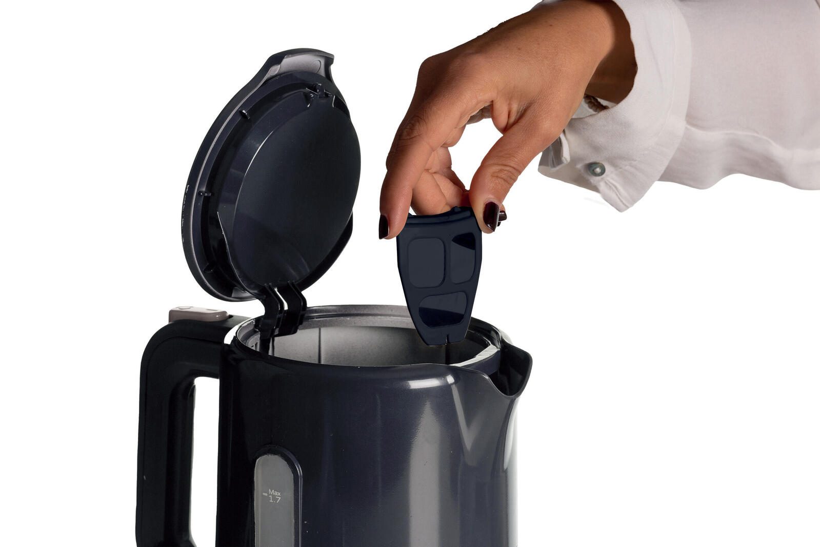 Der Frühstückswasserkocher ist praktisch und sicher: Er verfügt über eine automatische Abschaltung nach dem Kochen, einen Sicherheitsdeckel und einen sichtbaren Wasserstand. Im Inneren des Wasserkochers befindet sich unter dem Ausguss der herausnehmbare und waschbare Kalkfilter.