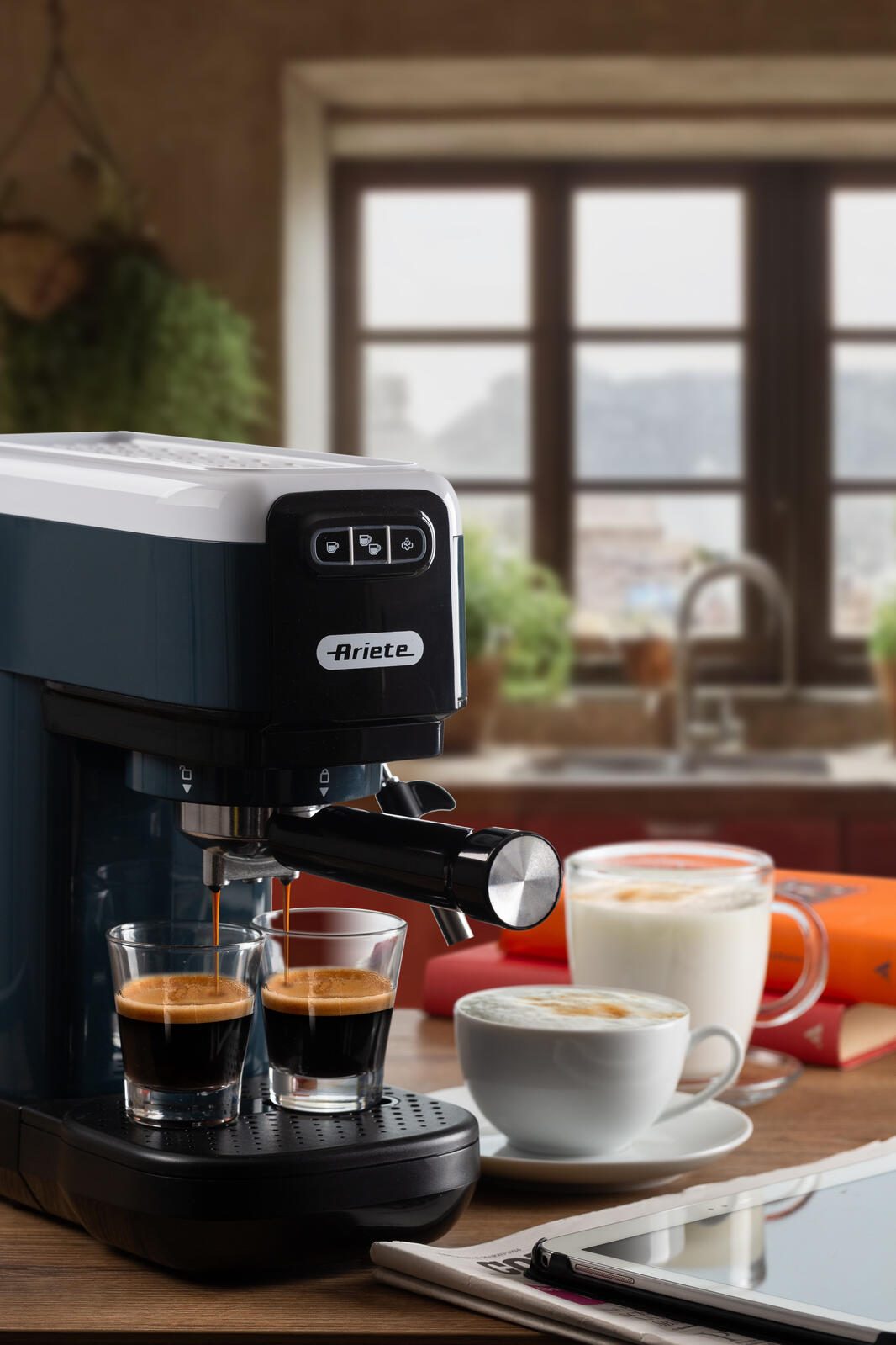 Die kompakte und farbenfrohe Espressomaschine 1399 wurde für Menschen entwickelt, die ein farbenfrohes Leben führen – genau das Richtige für Sie! Mit einer Breite von 14 cm passt sie perfekt in jeden Raum und ist somit ideal für junge, dynamische Umgebungen, ohne Platz einzubüßen. Erhältlich in verschiedenen frischen, leuchtenden Farben verleiht sie Ihrer Küche Stil und Persönlichkeit.