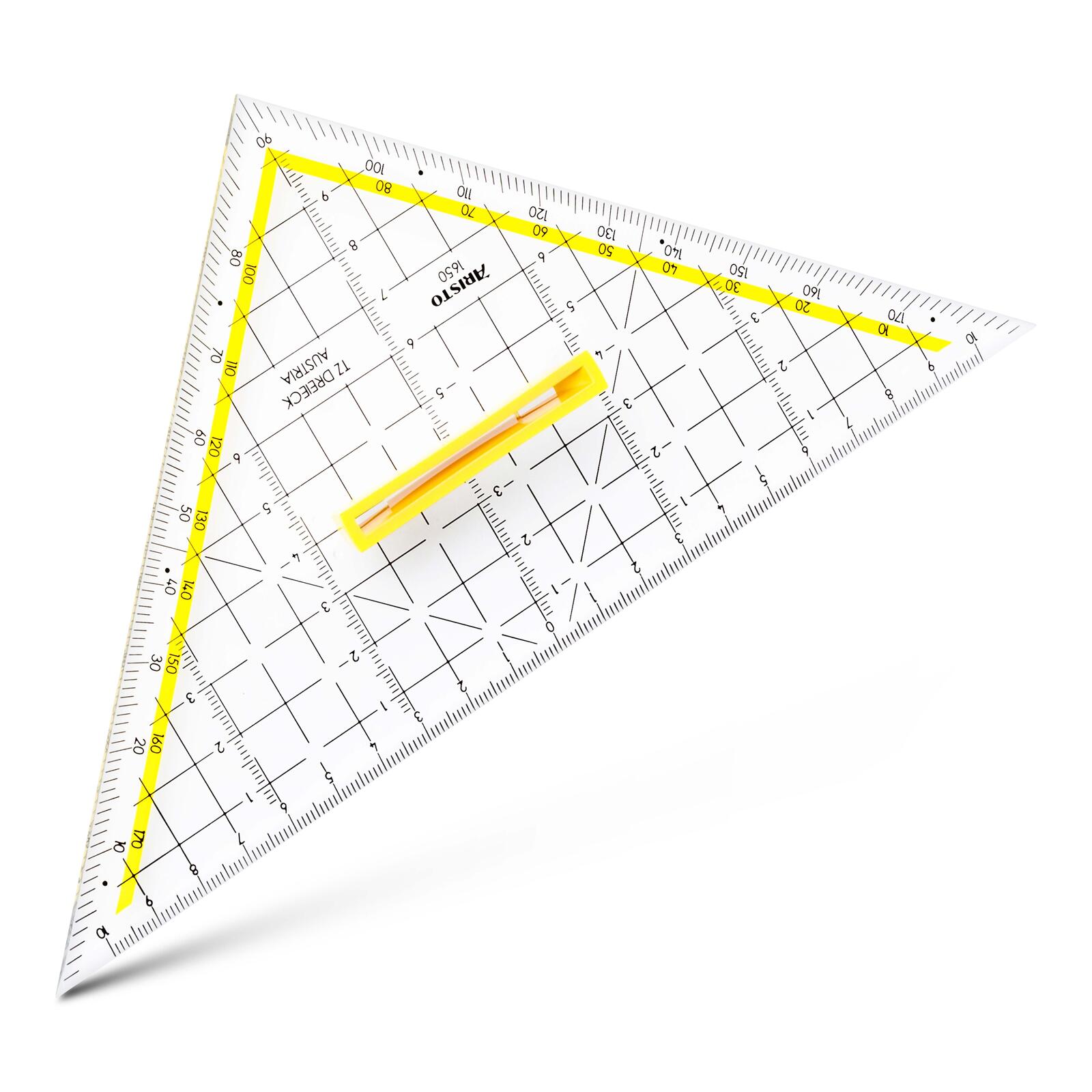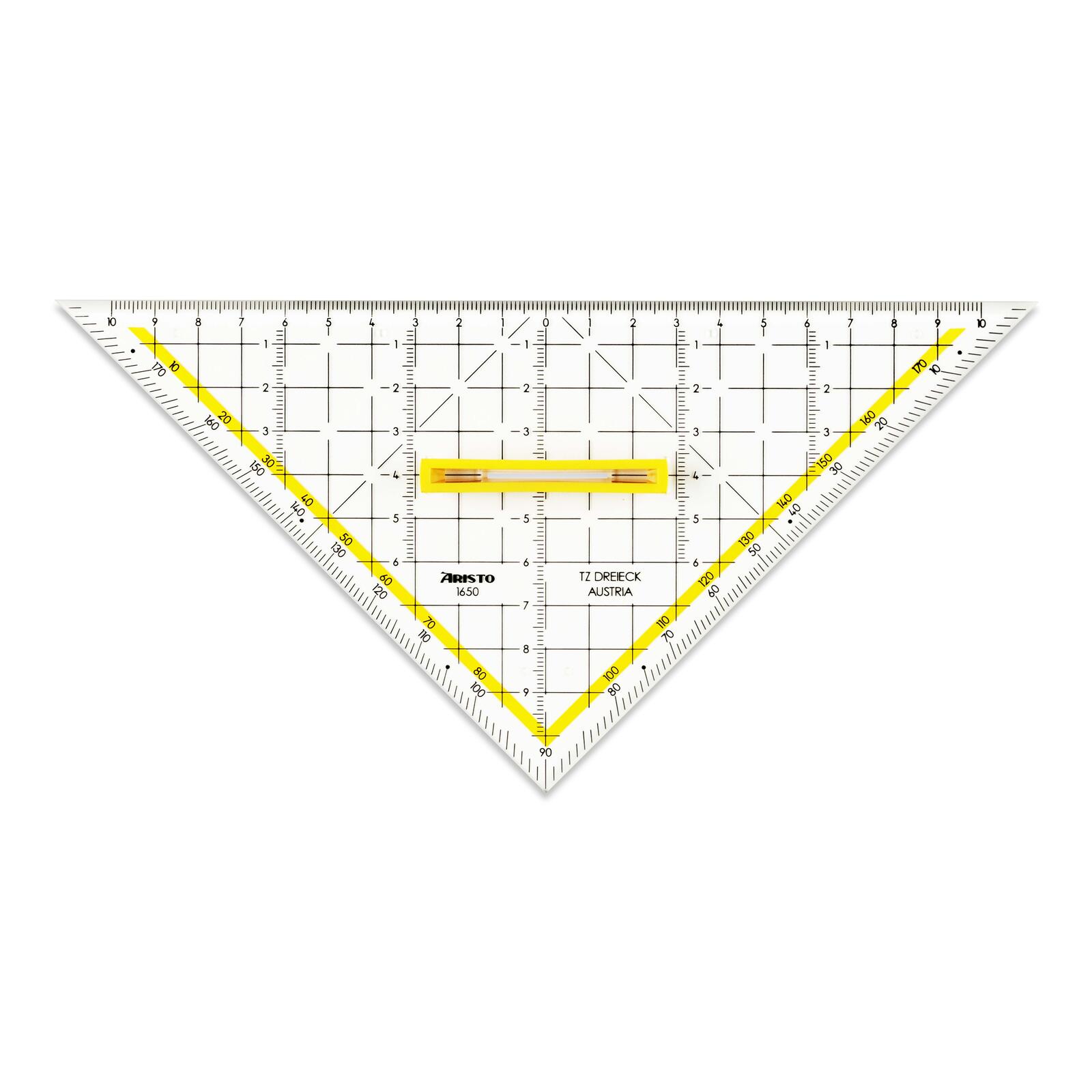 Das Aristo TZ-Dreieck 22,5 cm verfügt über einen 10-mm Raster, eine gegenläufige Grad-Skala und Tuschekanten. Mit einer Facette von 90° bis 1° ermöglicht es präzise Messungen und Zeichnungen.