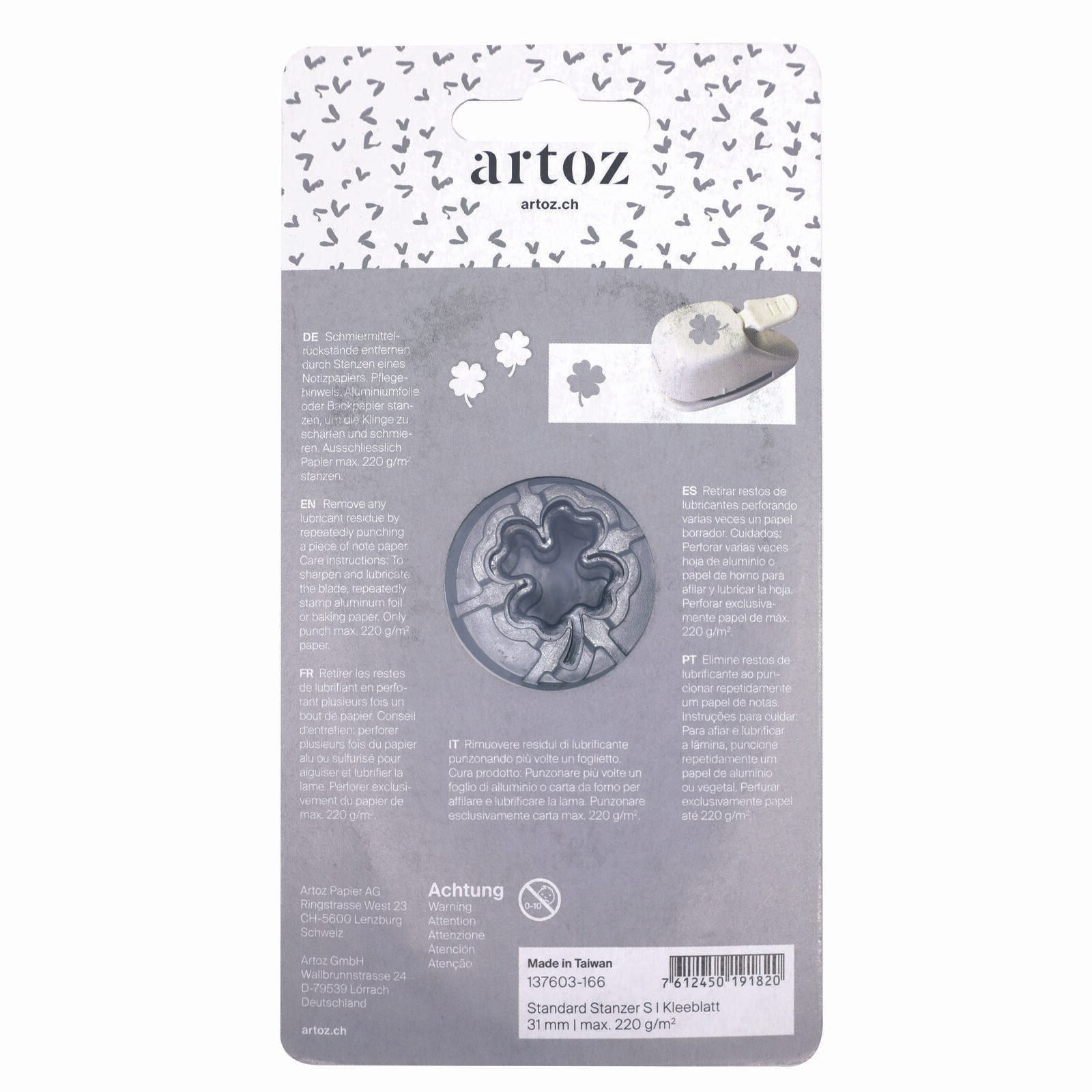 Der artoz Motivlocher Kleeblatt ist ein vielseitiges Werkzeug, das sich ideal für kreative Bastelprojekte eignet. Mit seinem ansprechenden Kleeblatt-Motiv bringt dieser Motivstanzer eine fröhliche Note in Ihre Bastelarbeiten und ist für alle Altersgruppen geeignet. Ob für das Gestalten von Einladungen, Grußkarten oder Scrapbook-Seiten, der Motivlocher bietet Ihnen die Möglichkeit, einzigartige Designs zu kreieren, die Ihre Persönlichkeit widerspiegeln. Die Qualität des artoz Motivlochers ist bemerkenswert. Er wurde mit einem Fokus auf Benutzerfreundlichkeit und Langlebigkeit entwickelt. Der Stanzer lässt sich mühelos bedienen, sodass Sie auch bei umfangreichen Projekten nicht an Ihre Grenzen stoßen. Die handliche Größe ermöglicht eine einfache Aufbewahrung und einen problemlosen Transport, sodass Sie ihn überallhin mitnehmen können. Das Kleeblatt-Motiv ist nicht nur dekorativ, sondern symbolisiert auch Glück und Freude. Nutzen Sie diesen Motivlocher, um Ihre Bastelarbeiten mit positiven Botschaften zu versehen und eine einladende Atmosphäre zu schaffen. Egal, ob Sie für besondere Anlässe oder einfach nur zum Spaß basteln, der artoz Motivlocher Kleeblatt ist ein unverzichtbares Werkzeug, das Ihre Kreativität anregt und Ihnen hilft, wunderschöne Ergebnisse zu erzielen. Mit dem artoz Motivlocher Kleeblatt setzen Sie auf Qualität und Funktionalität. Er ist die perfekte Ergänzung für jede Bastelsammlung und wird Ihnen dabei helfen, Ihre Ideen in die Tat umzusetzen. Genießen Sie die Freiheit, mit verschiedenen Materialien zu arbeiten und Ihrer Kreativität freien Lauf zu lassen.Technische Daten