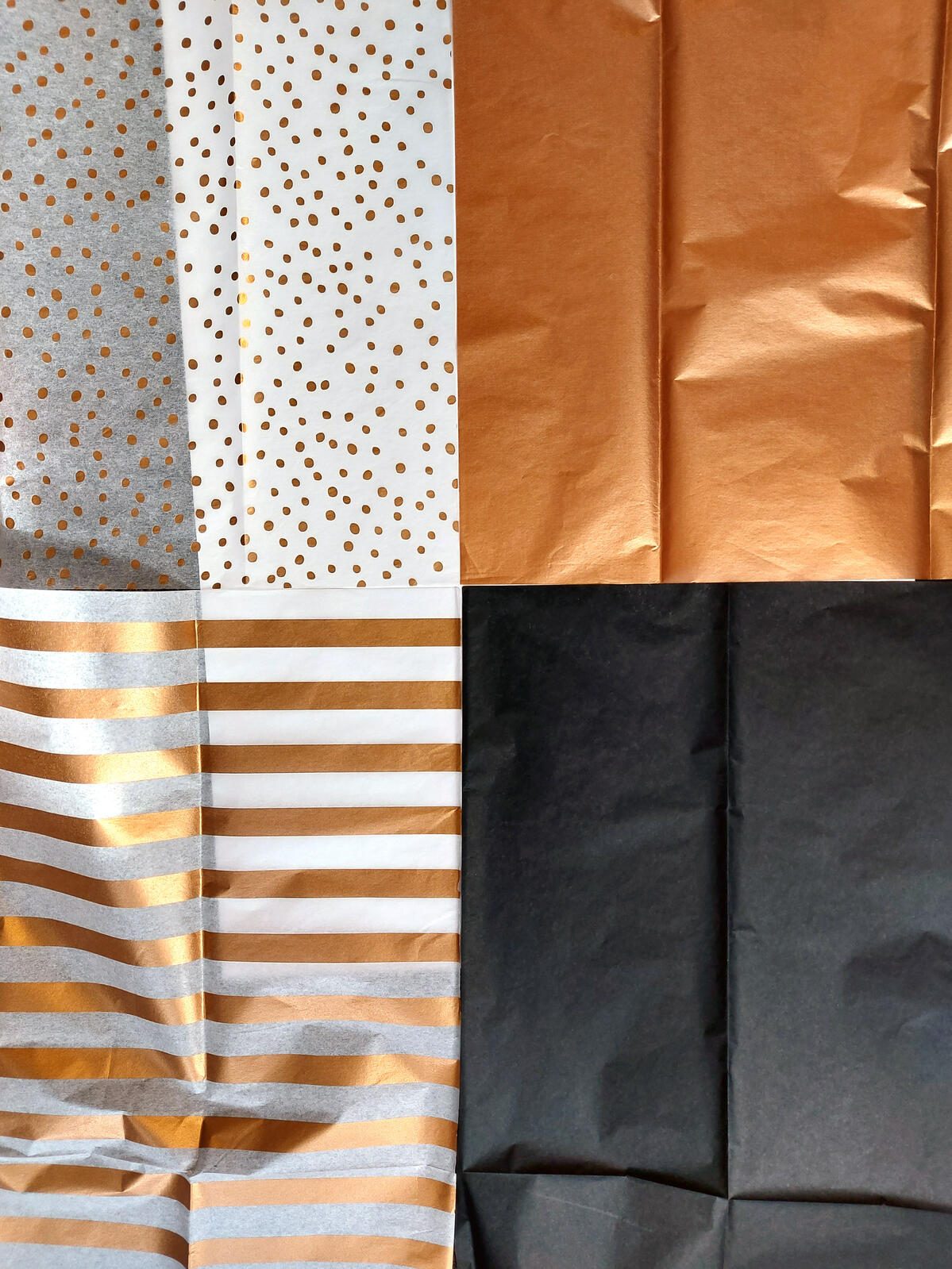 Das artoz Seidenpapier in den Maßen 50 cm x 70 cm ist eine exzellente Wahl für kreative Projekte. Mit seiner eleganten Farbkombination aus kupfer, schwarz und weiß bringt es eine besondere Note in Ihre Gestaltungsarbeiten.