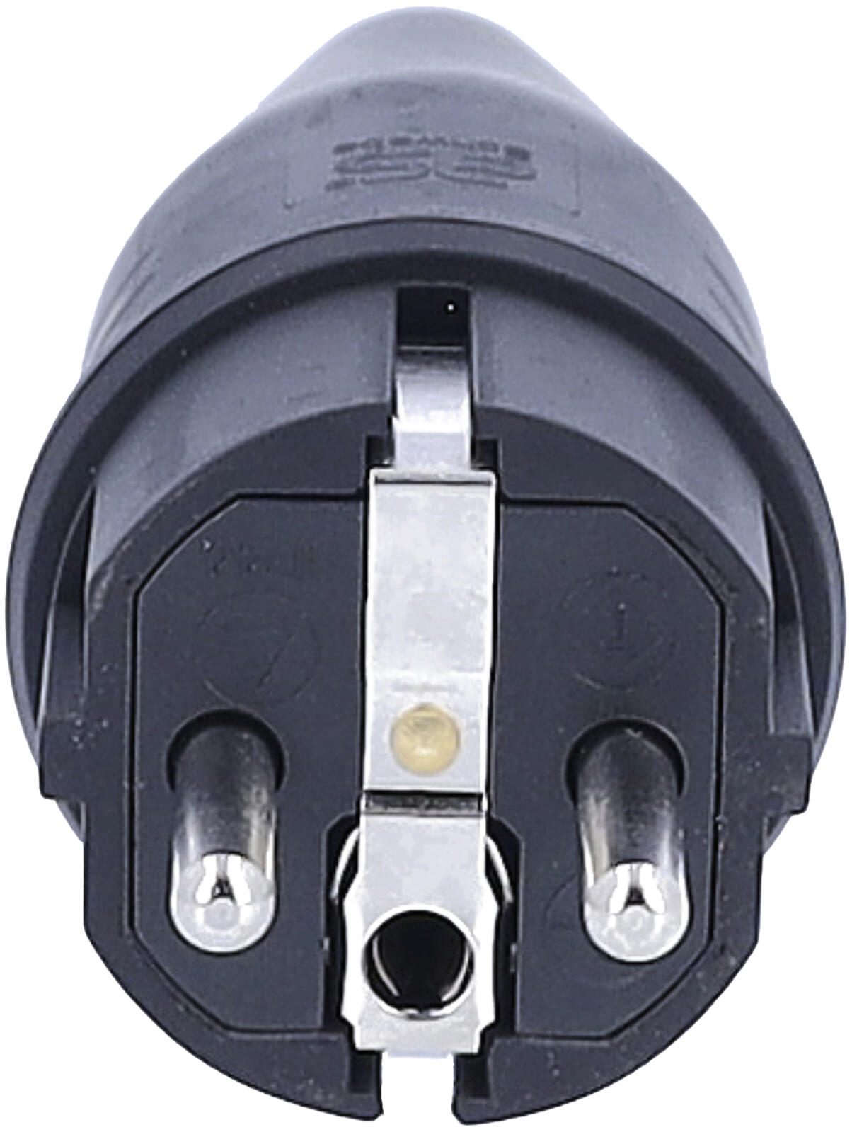 Dank des Schukosteckertyps passt der Stecker in handelsübliche Steckdosen und sorgt für eine stabile Verbindung. Mit seinem schwarzen Farbton fügt sich der Stecker unauffällig in jede Umgebung ein.