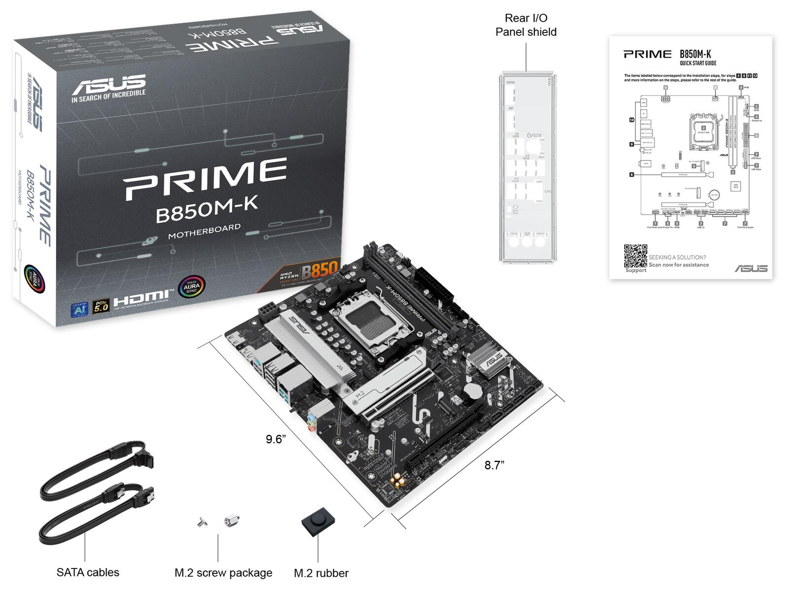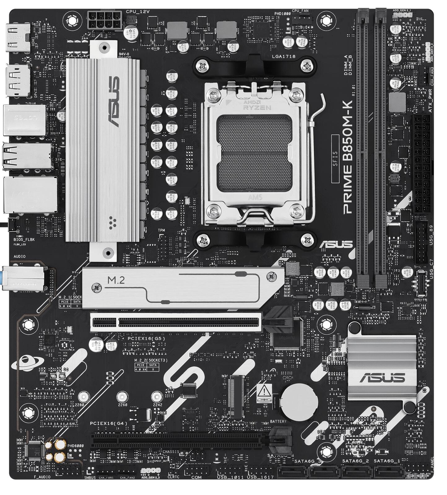 Die Mainboards der ASUS Prime Serie wurden von Experten entwickelt, um das volle Potenzial der AMD Ryzen™ 9000er Prozessoren zu entfesseln. Das PRIME B850M-K Mainboard bietet Nutzern und PC-DIY-Buildern eine Reihe von Leistungsoptimierungen über intuitive Software- und Firmware-Funktionen. Er wurde als "Advanced AI PC-ready" entwickelt und bietet die nötige Leistung und Konnektivität für anspruchsvolle KI-Anwendungen.