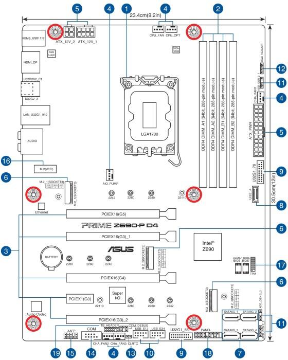 1 x CPU ¦ 4 x DIMM 288-polig ¦ 1 x PCIe 5. 0 x16 ¦ 1 x PCIe 4. 0 x16 (x4-Modus) ¦ 1 x PCIe 3. 0 x1 ¦ 2 x PCIe 3. 0 x16 (x4-Modus) ¦ 1 x M. 2 socket (für Intel CNVi WLAN-Modul)
