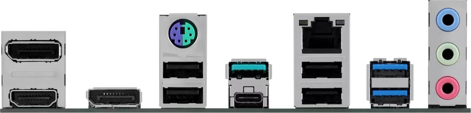 1 x HDMI 2 x DisplayPort 2 x USB 3.2 Gen 1 4 x USB 2.0 1 x USB 3.2 Gen 2 1 x USB-C 3.2 Gen 2 1 x PS/2-Tastatur/-maus 1 x LAN (Gigabit Ethernet) 1 x Audio Line-In - Mini-Klinkenstecker 1 x Audio Line-Out - Mini-Klinkenstecker 1 x Mikrofon - Mini-Klinkenstecker