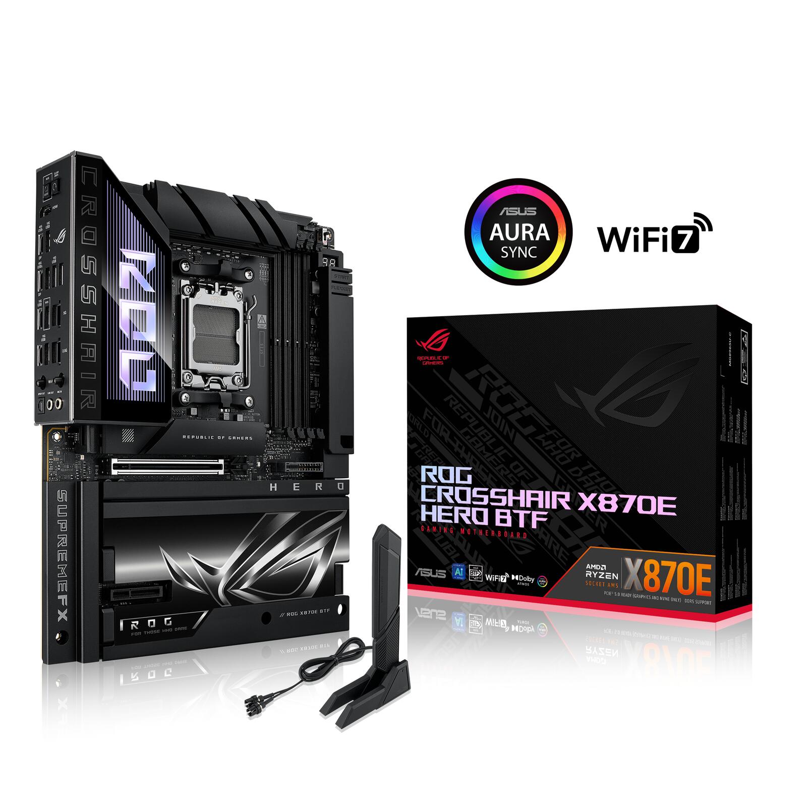 ASUS ROG CROSSHAIR X870E HERO BTF Mainboard Sockel AM5 X870E, ATX, Advanced AI PC-ready, DDR5, Wi-Fi 7, 5x M.2, PCIe 5.0