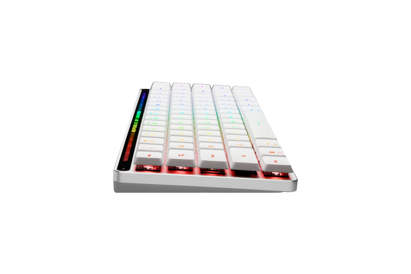 • Kompaktes und schlankes Design: 65%-Tastatur in einem 60%-Rahmen mit einem 26,5 mm-Profil, in dem Pfeil- und Navigationstasten meisterhaft integriert sind