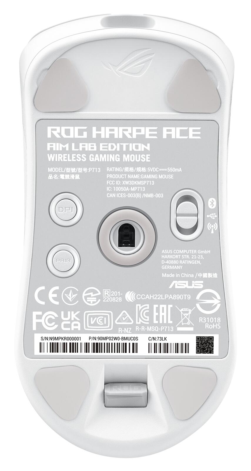 ASUS ROG Harpe Ace Aim Lab Edition RGB Gaming Maus, weiß kabellos, 2.4 GHz RF, Bluetooth, USB, optischer ROG AimPoint-Sensor 36.000 dpi
