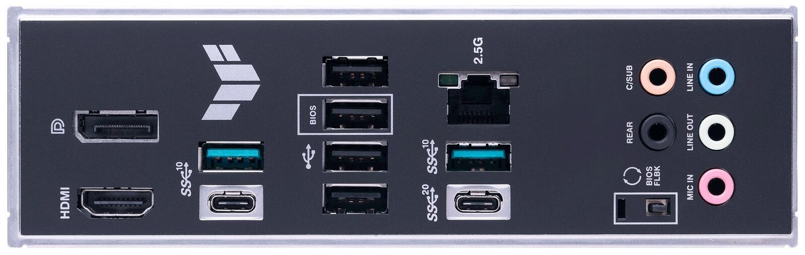 Mikrofon - Mini-Klinkenstecker ¦ 1 x Audio Line-Out (Mitte/Subwoofer) - Mini-Klinkenstecker ¦ 1 x Audio Line-Out (hinten) - Mini-Klinkenstecker ¦ 1 x LAN (2. 5Gigabit Ethernet)