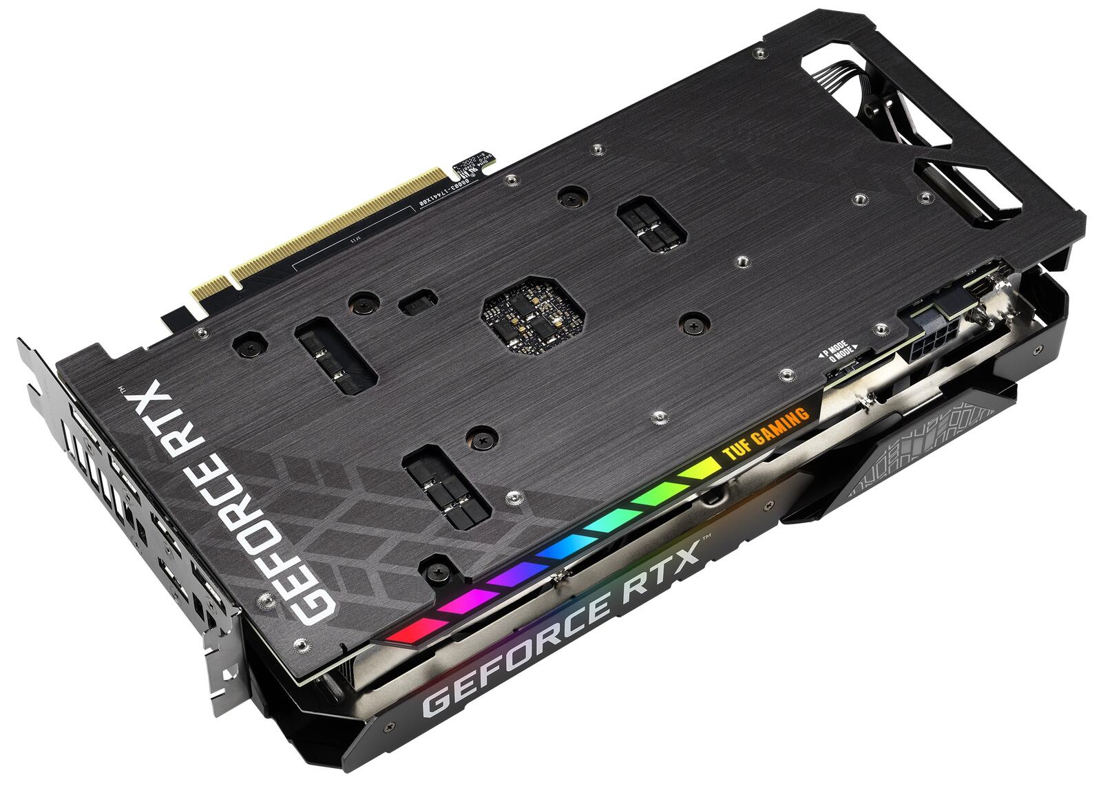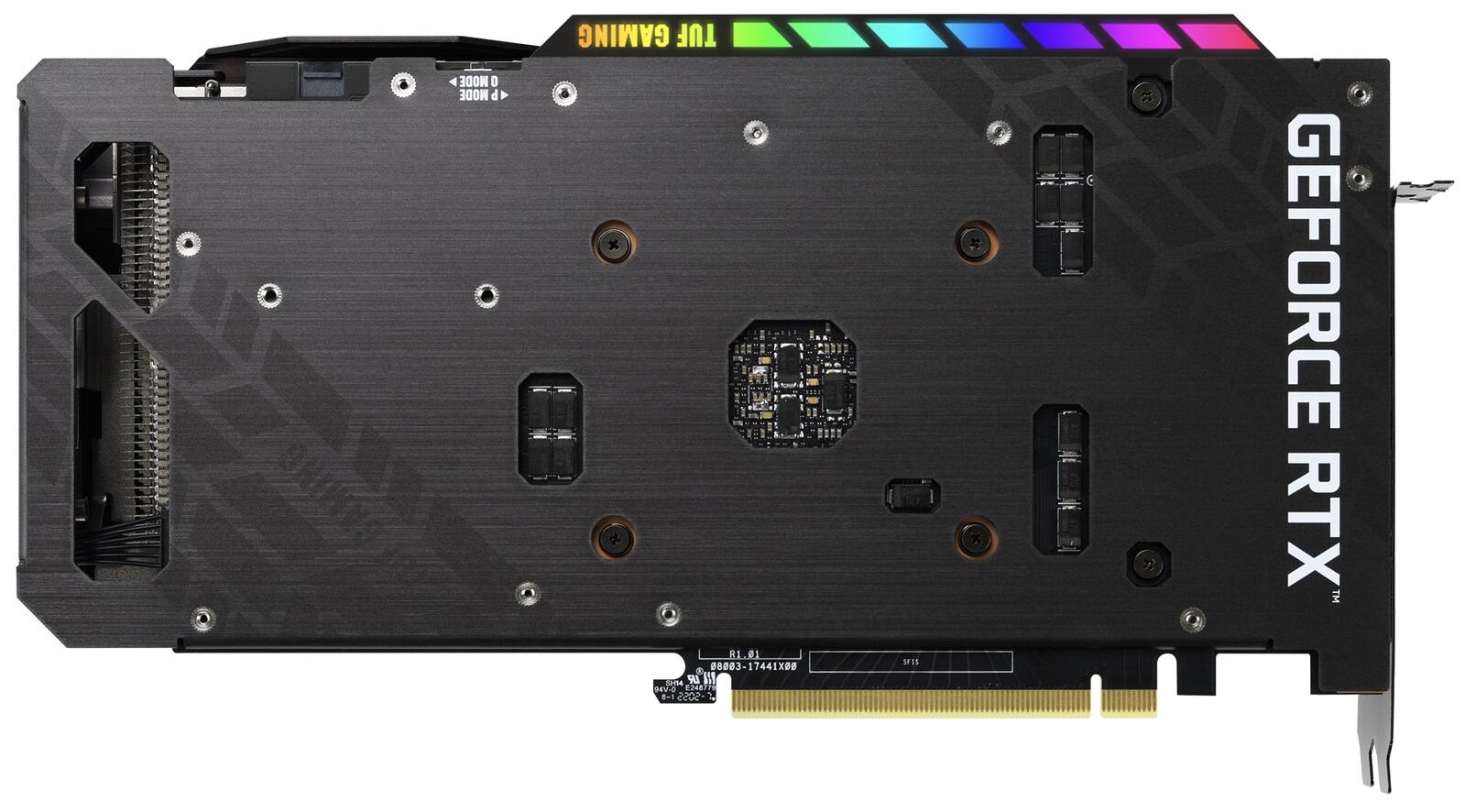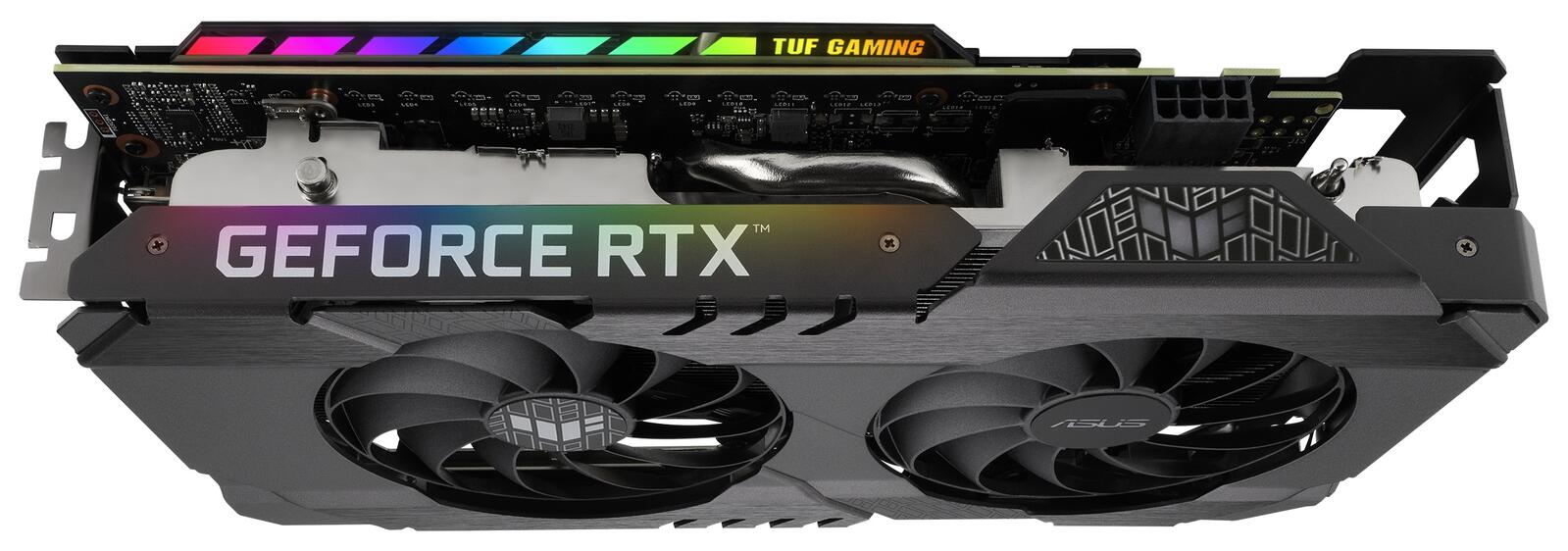 Ein ARGB-Element kann so angepasst werden, dass es eine Reihe von ästhetischen und funktionalen Effekten anzeigt und auch mit anderen ASUS-Komponenten synchronisiert werden kann, um eine einheitliche Beleuchtung zu ermöglichen. Ein 8-Pin-Anschluss erfüllt den Strombedarf der GeForce RTX 3050 und Onboard-LEDs leuchten auf, wenn die Stromanschlüsse nicht richtig eingesteckt sind.
