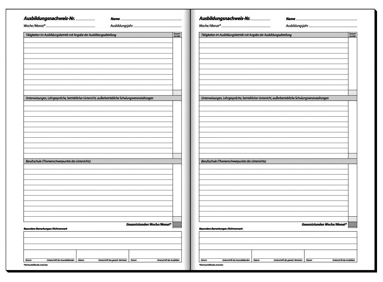 - Formular: Ausbildungsnachweis, wöchentliche/monatliche Eintragungen