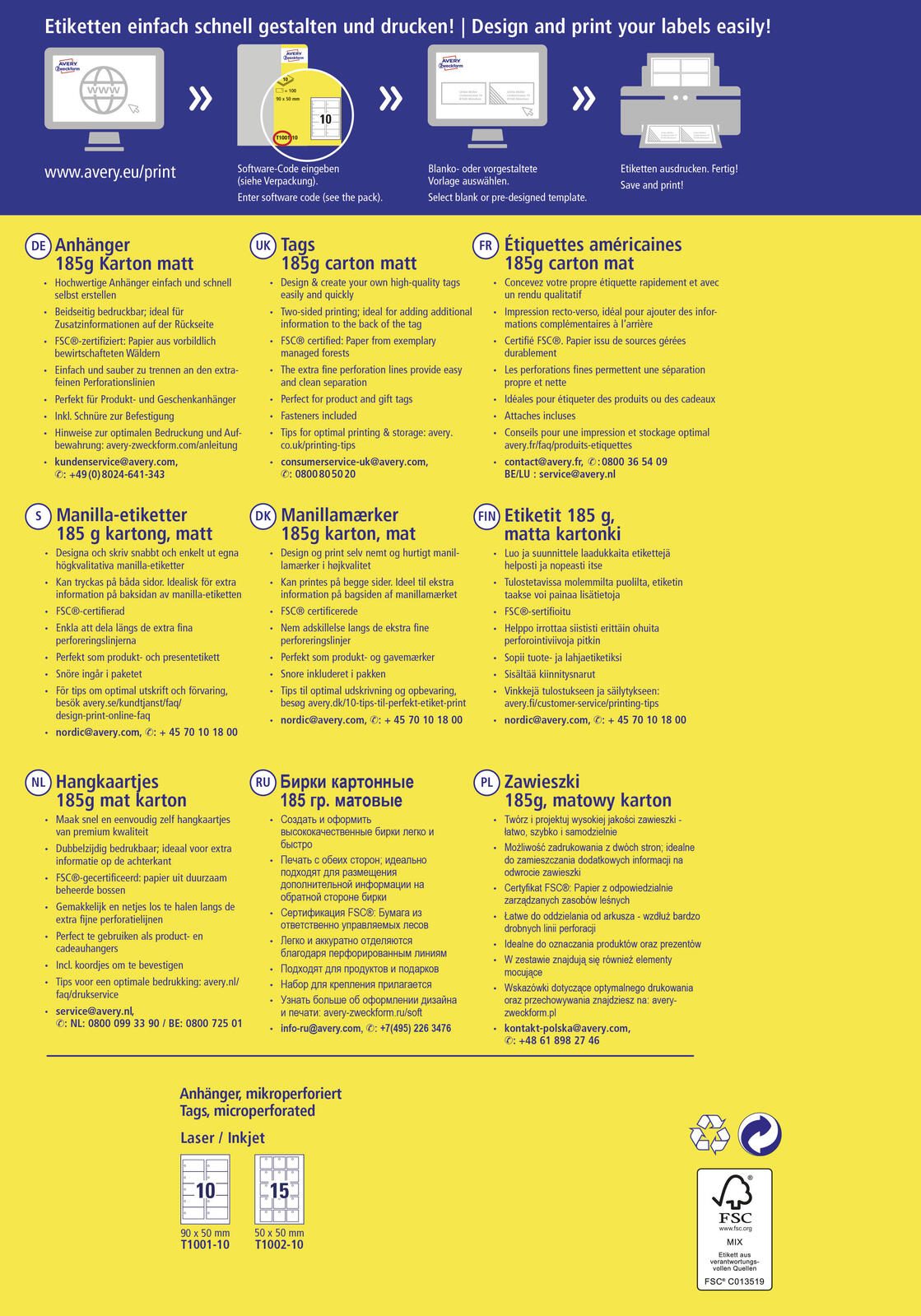 Der stabile Karton sorgt dafür, dass die Etiketten sich einfach bedrucken lassen, und ihre Mikroperforation ermöglicht ein müheloses Abtrennen vom A4-Bogen. Jede Packung enthält 100 Etiketten, die mit Laserdruckern bedruckbar sind.