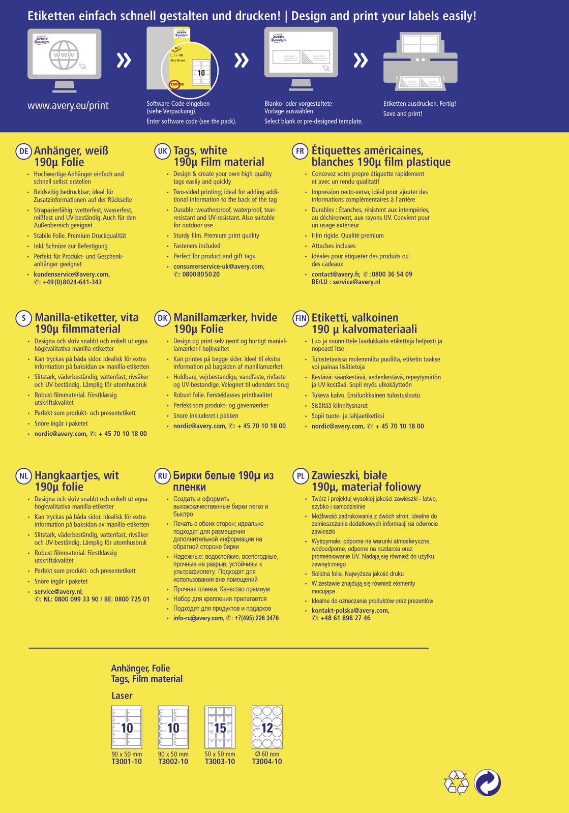 Die AVERY Zweckform Hängeetiketten in der Größe 90,0 x 50,0 mm bieten dir eine vielseitige und praktische Lösung für deine Beschriftungsbedürfnisse. Diese blanko Etiketten sind ideal für eine Vielzahl von Anwendungen, sei es im Büro, im Einzelhandel oder für private Projekte. Mit einem Pack von 100 Etiketten hast du ausreichend Material zur Hand, um deine Produkte, Geschenke oder Dokumente ansprechend zu kennzeichnen. Die Etiketten sind aus hochwertigem Polyester gefertigt, was sie langlebig und widerstandsfähig macht. Ihre weiße Farbe sorgt dafür, dass Druckergebnisse klar und deutlich zur Geltung kommen. Du kannst die Hängeetiketten mühelos mit einem Laserdrucker bedrucken, was dir die Möglichkeit gibt, individuelle Designs und Texte zu erstellen. Die Anordnung auf einem A4-Bogen ermöglicht eine einfache Handhabung und effizientes Drucken, sodass du Zeit und Mühe sparst. Ein besonderes Merkmal dieser Etiketten ist die integrierte Mikroperforation, die das Abtrennen der Etiketten erleichtert. Dies gewährleistet eine saubere und präzise Anwendung, ohne dass du dir Sorgen um unschöne Ränder machen musst. Egal, ob du sie zur Kennzeichnung von Produkten im Geschäft, zur Organisation von Unterlagen oder zur Gestaltung von Geschenken verwendest, die AVERY Zweckform Hängeetiketten sind die perfekte Wahl für eine professionelle Präsentation. Mit den AVERY Zweckform Hängeetiketten erhältst du nicht nur ein praktisches Produkt, sondern auch eine Möglichkeit, deine Kreativität auszudrücken und deine Dinge individuell zu gestalten. Vertraue auf die Qualität von AVERY Zweckform und erlebe die Vorteile dieser vielseitigen Etiketten.Technische Daten